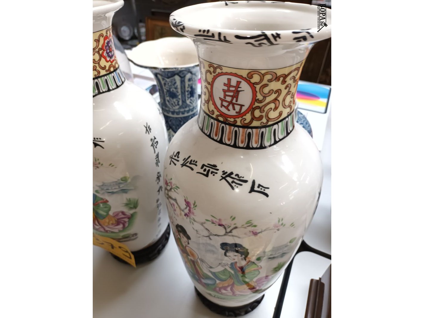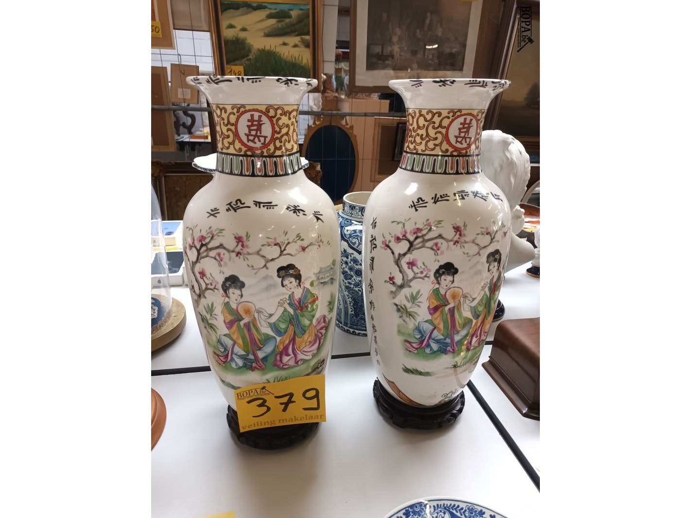 Koppel Chinese vazen op sokkel. Hoogte 46 cm.