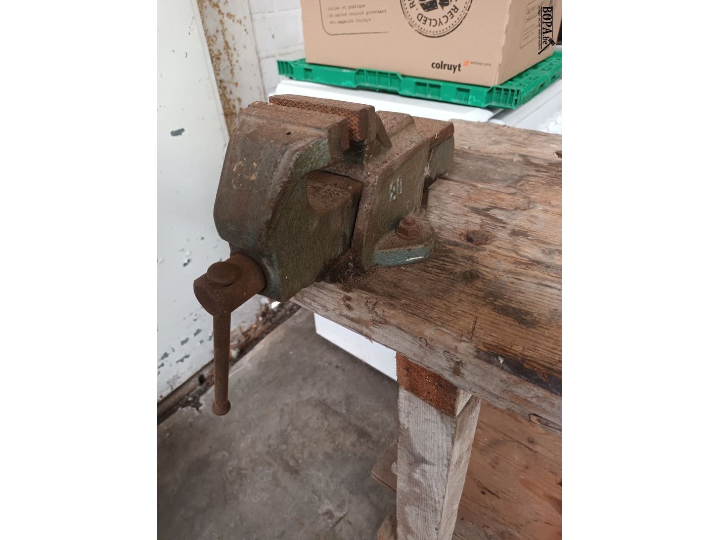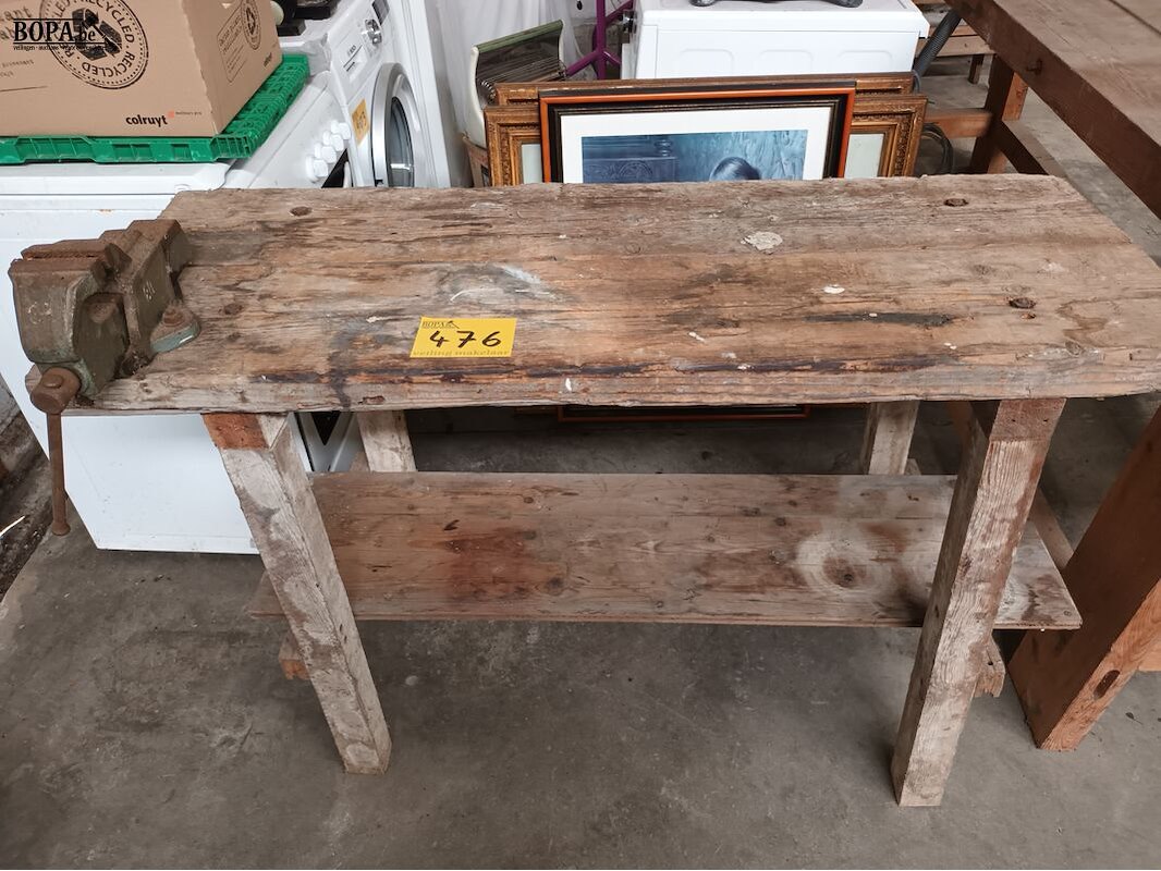 Lot 476 - houten werkbank met bankschroef