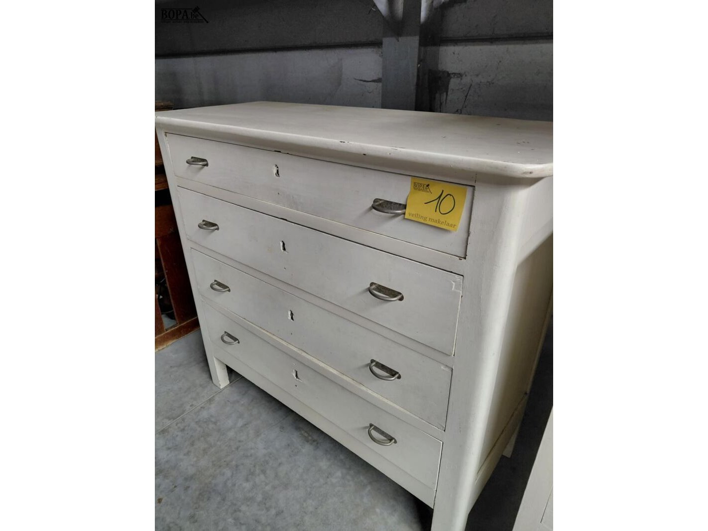 Wit houten dressoir met 4 lades: B 48,5cm L 117,5cm H 105cm