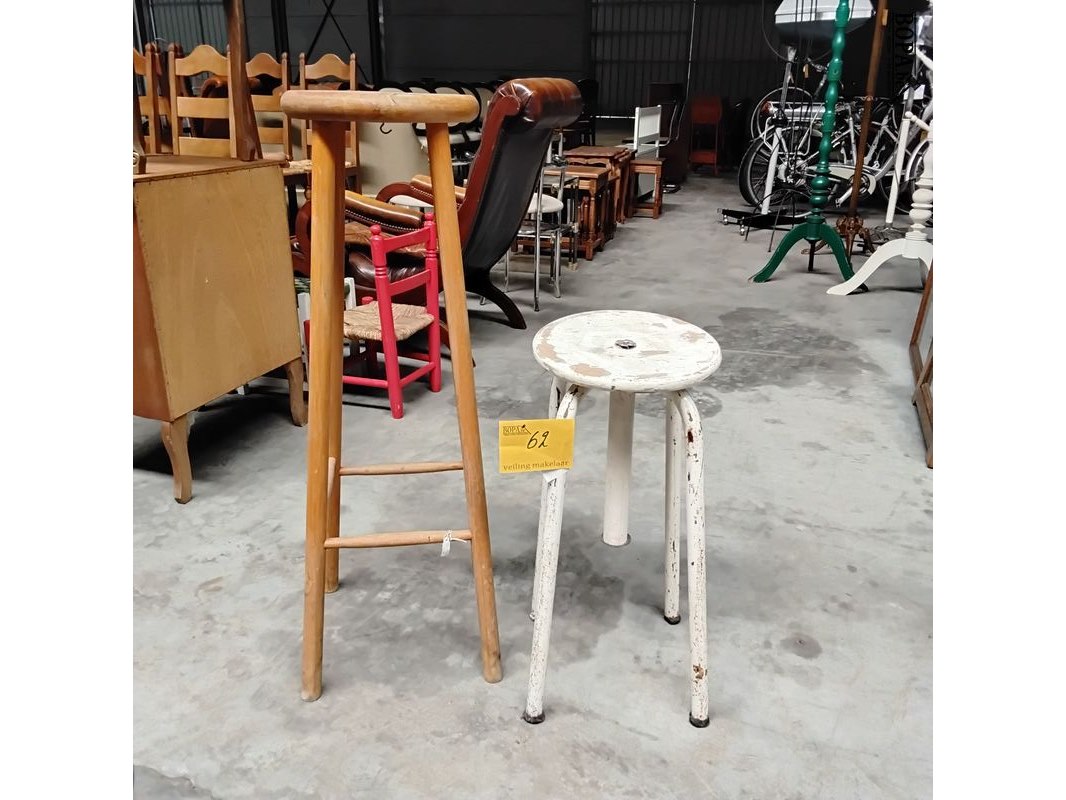 Duo oude krukken - industrieël model: H 90cm en H 56cm