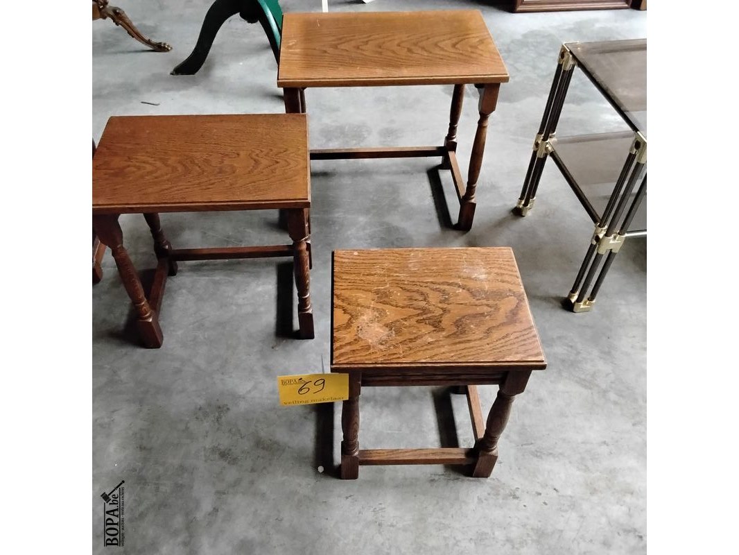 Trio van klassieke houten bijzettafels