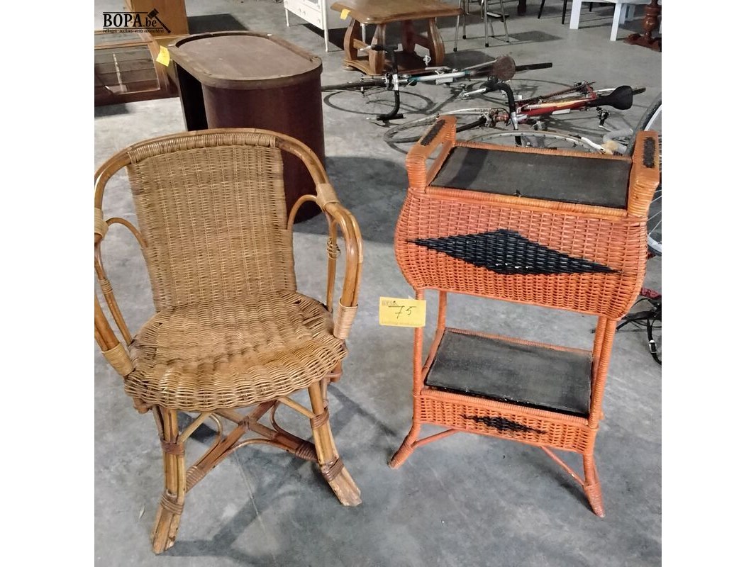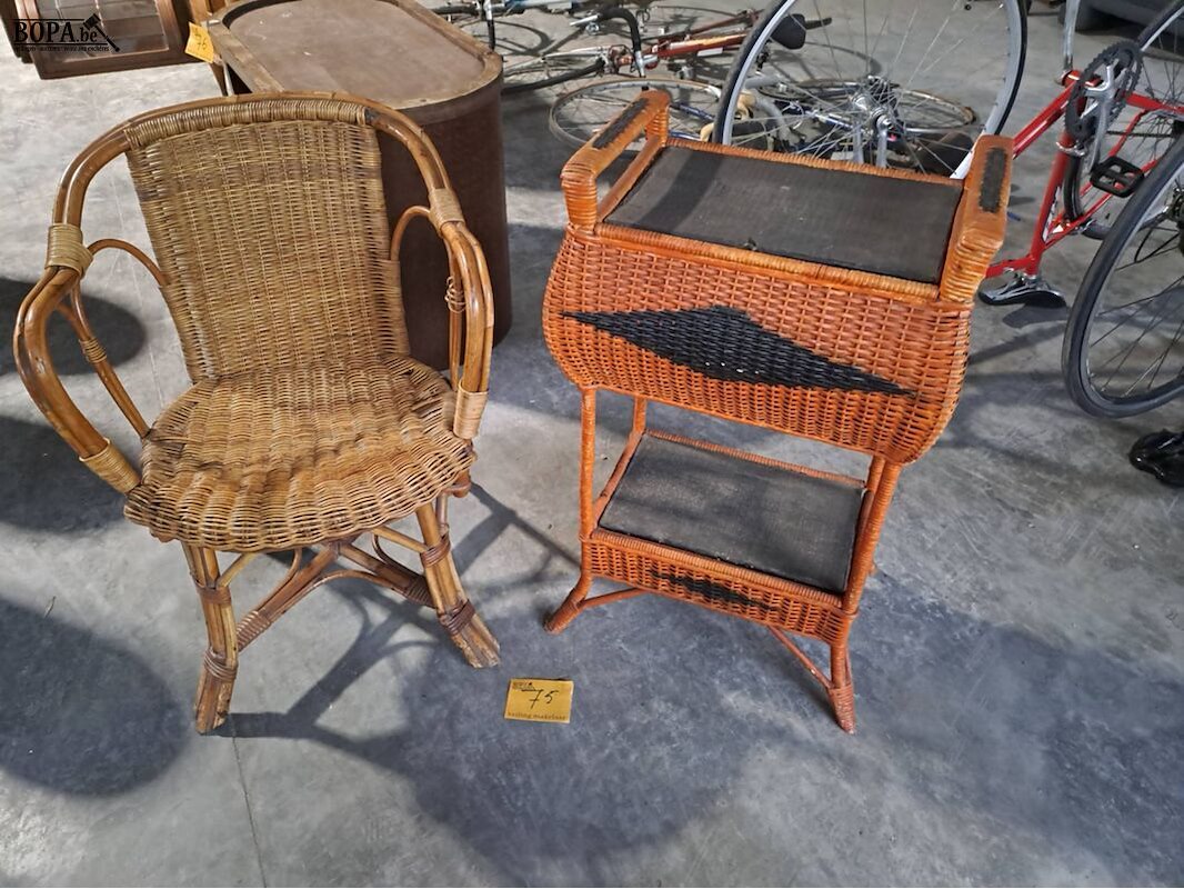 Vintage hoge rieten naaimand '50 - collectorsitem en rieten stoel
