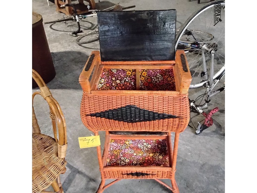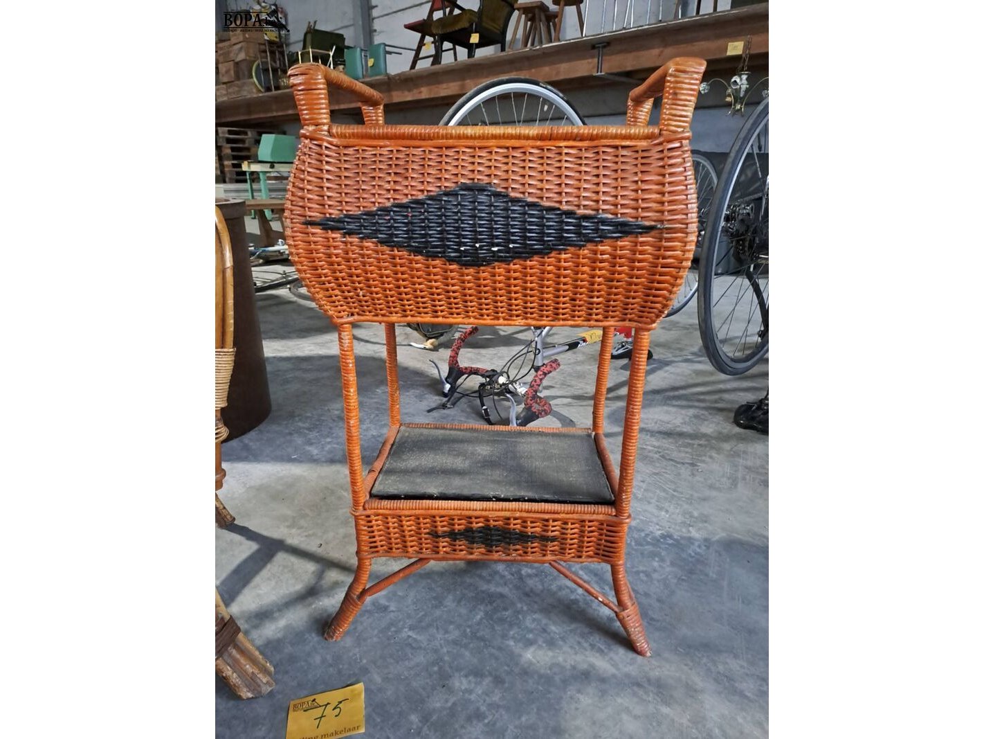 Lot 75 - vintage hoge rieten naaimand '50 - collectorsitem en rieten
