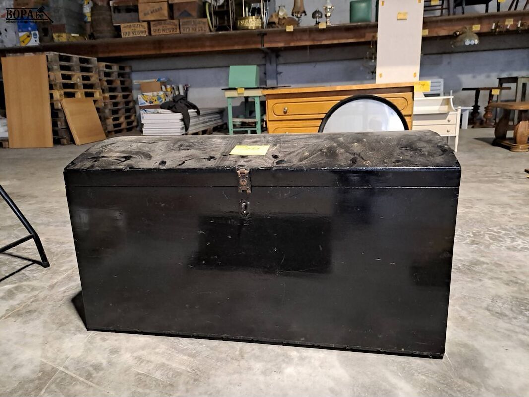 Oude zwarte houten kist - B 106cm - D 59cm - H 58cm