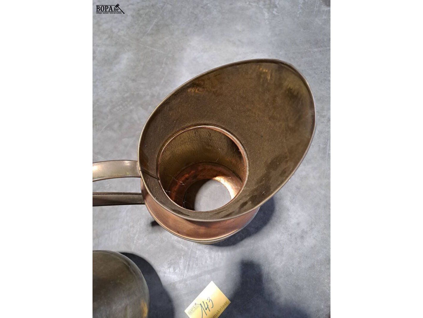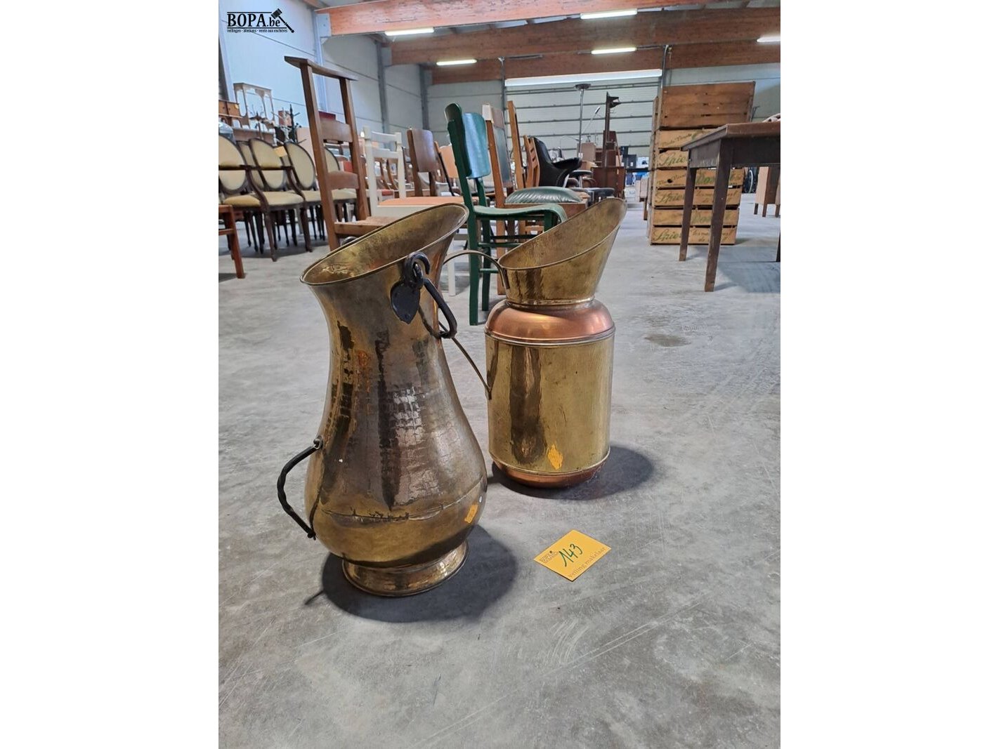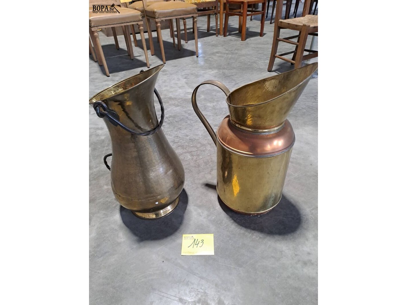 Lot 143 - duo antieken koperen kannen/paraplubakken
