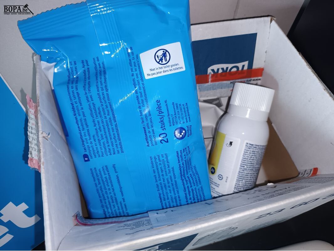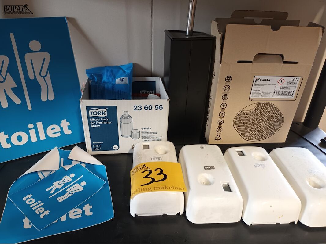 Diversen voor het toilet. 9 stuks zoals geurverstuivers, bordjes, geurpads voor piscine.