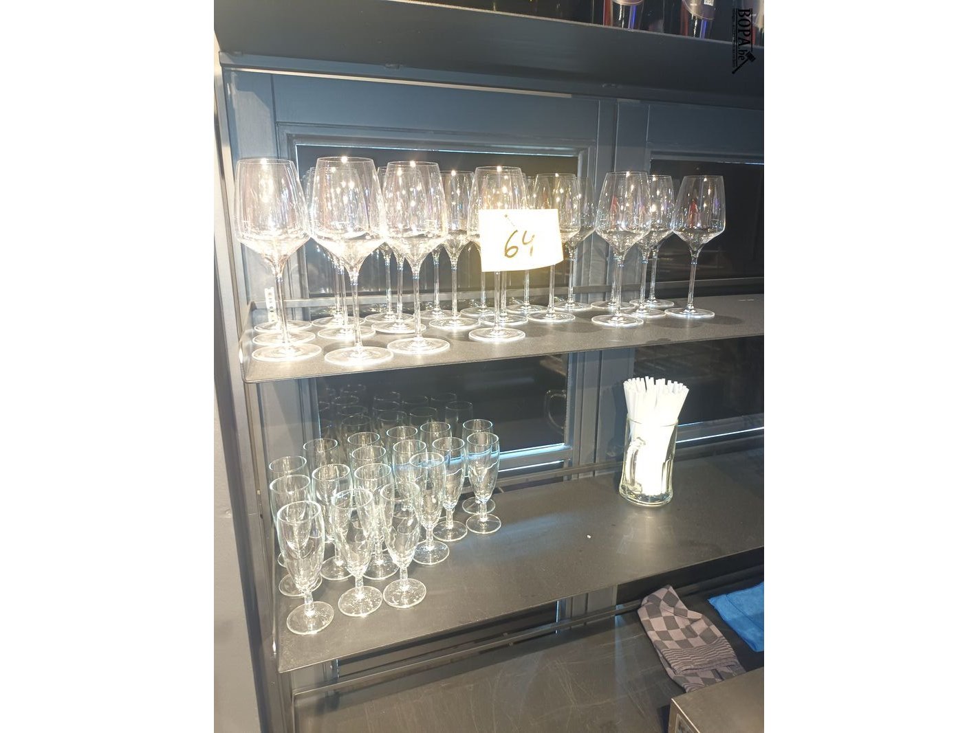 Wijnglazen. 38 stuks waarvan 8 cava glazen in plastiek.