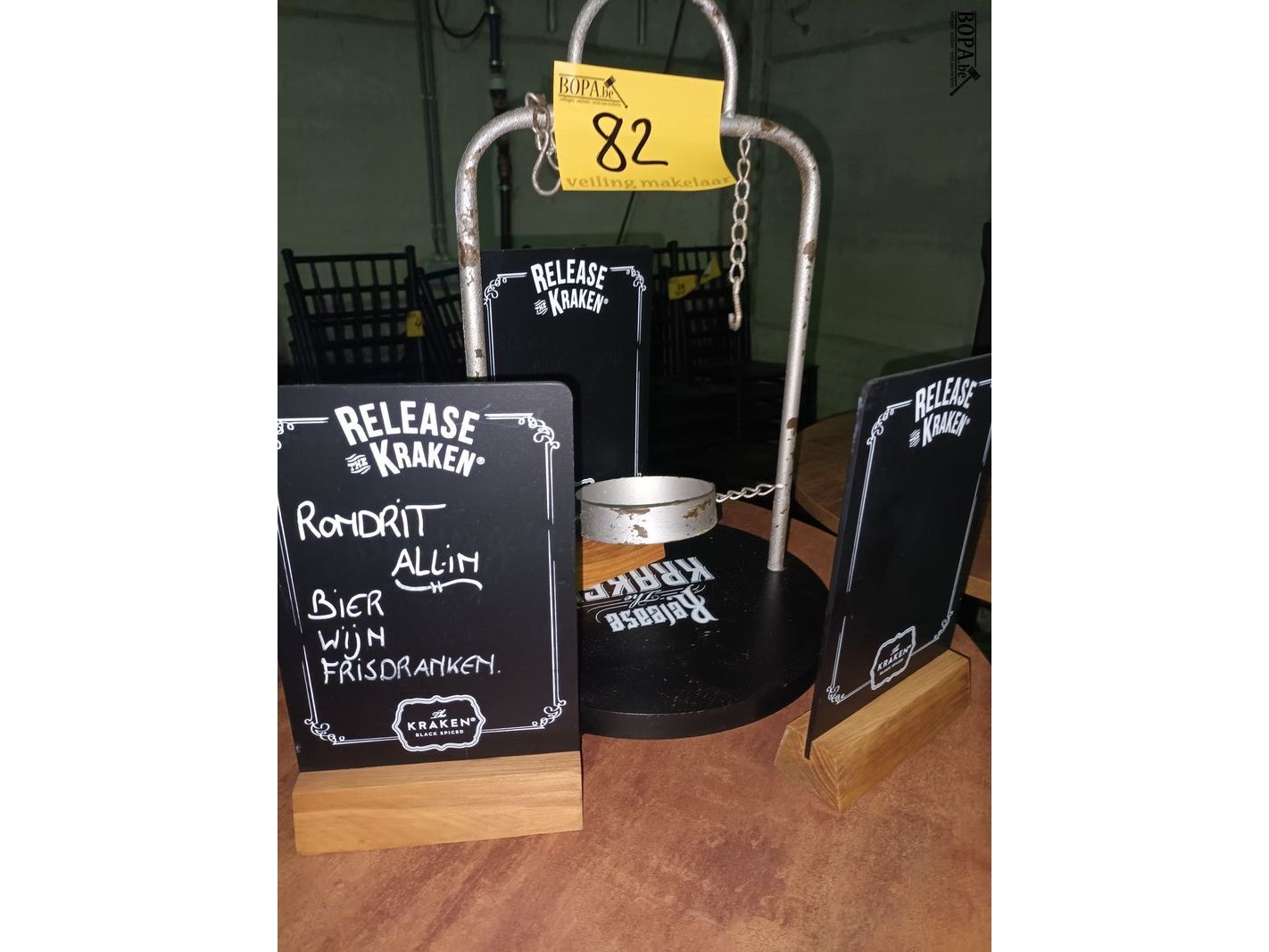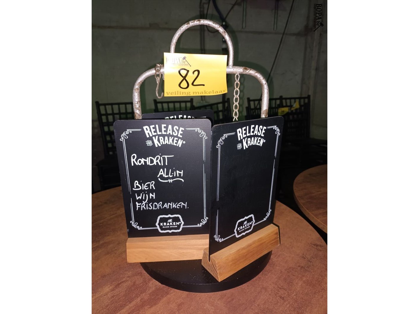 1 flessenstandaard en 3 menubordjes Kraken.