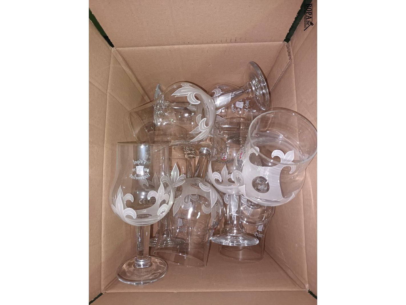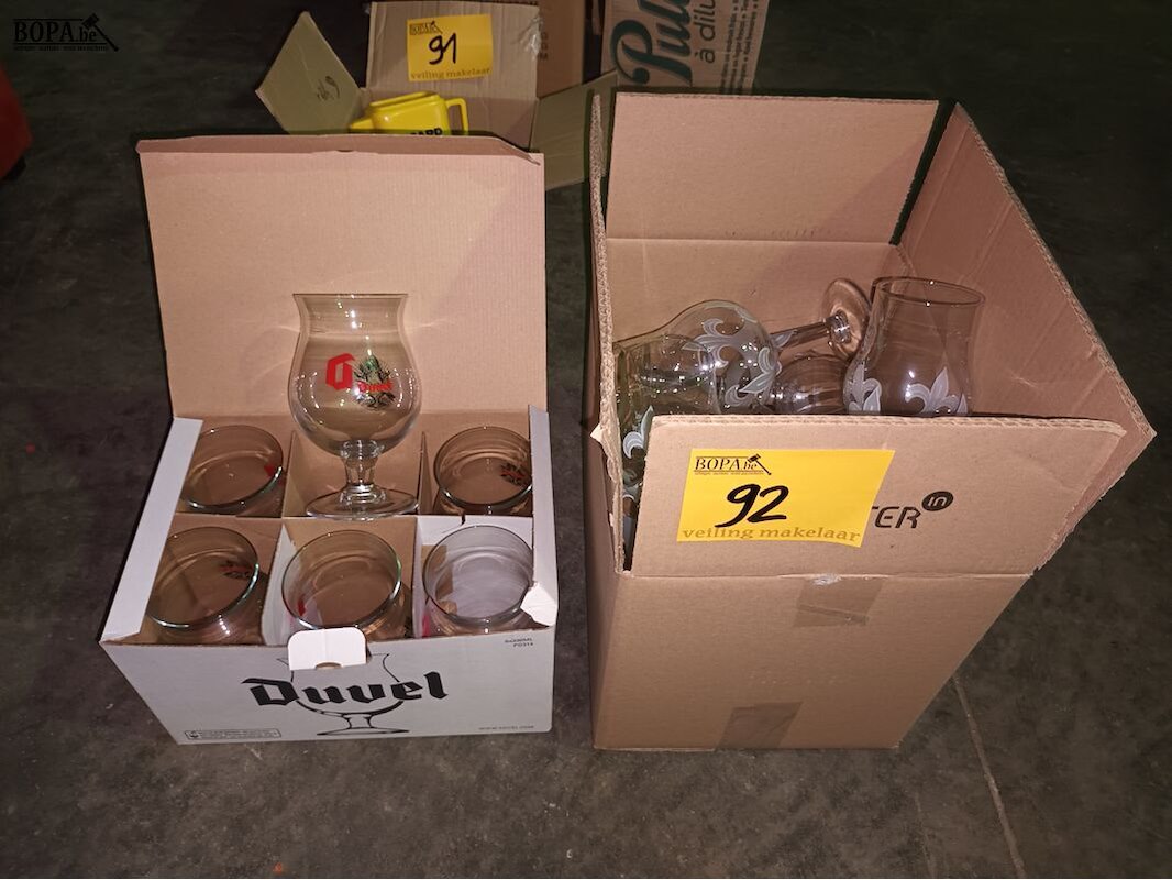 1 doos Duvel glazen en 1 doos Karmeliet glazen.