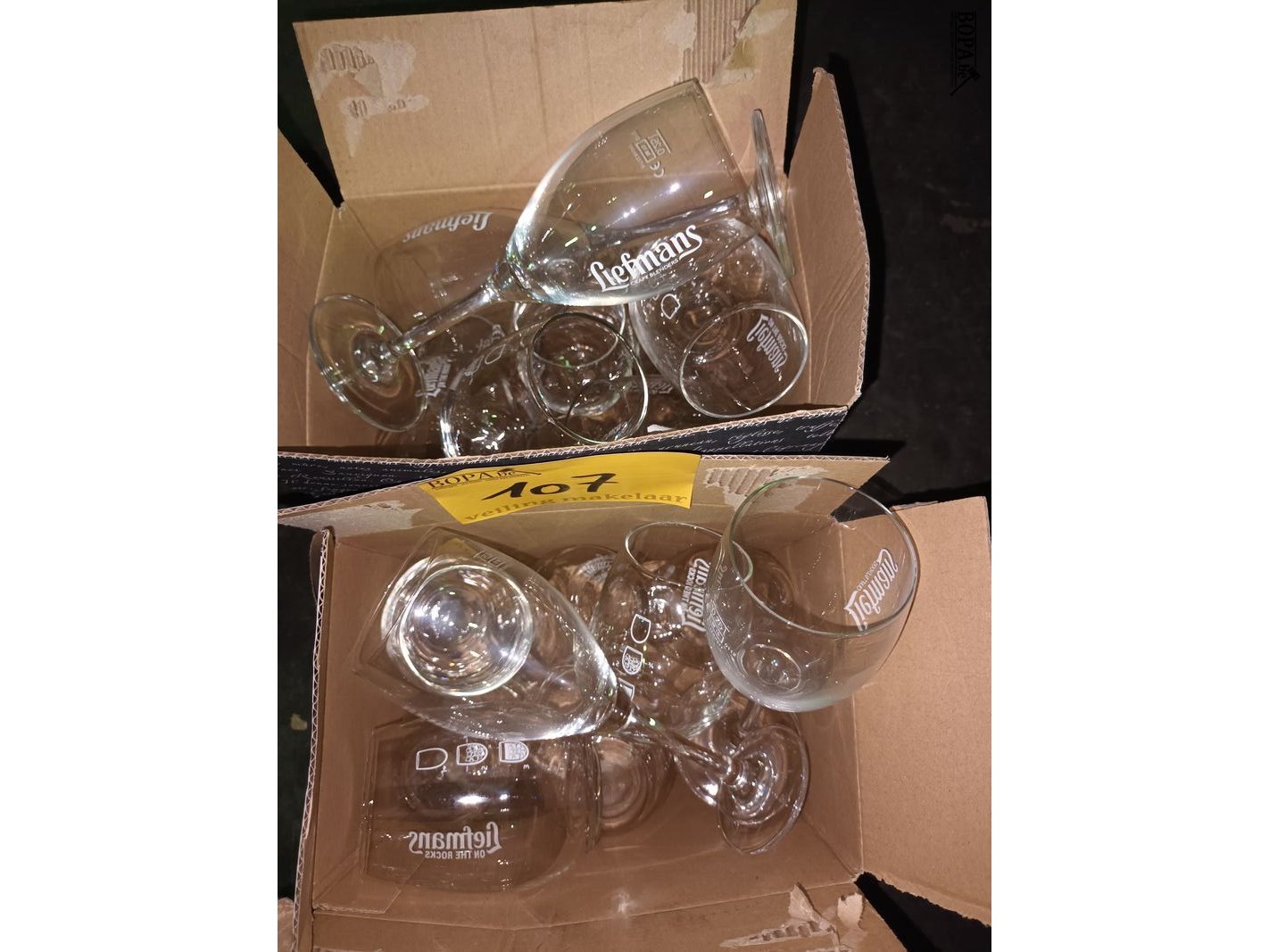 Lot 107 - glazen op voet liefmans. 2 dozen