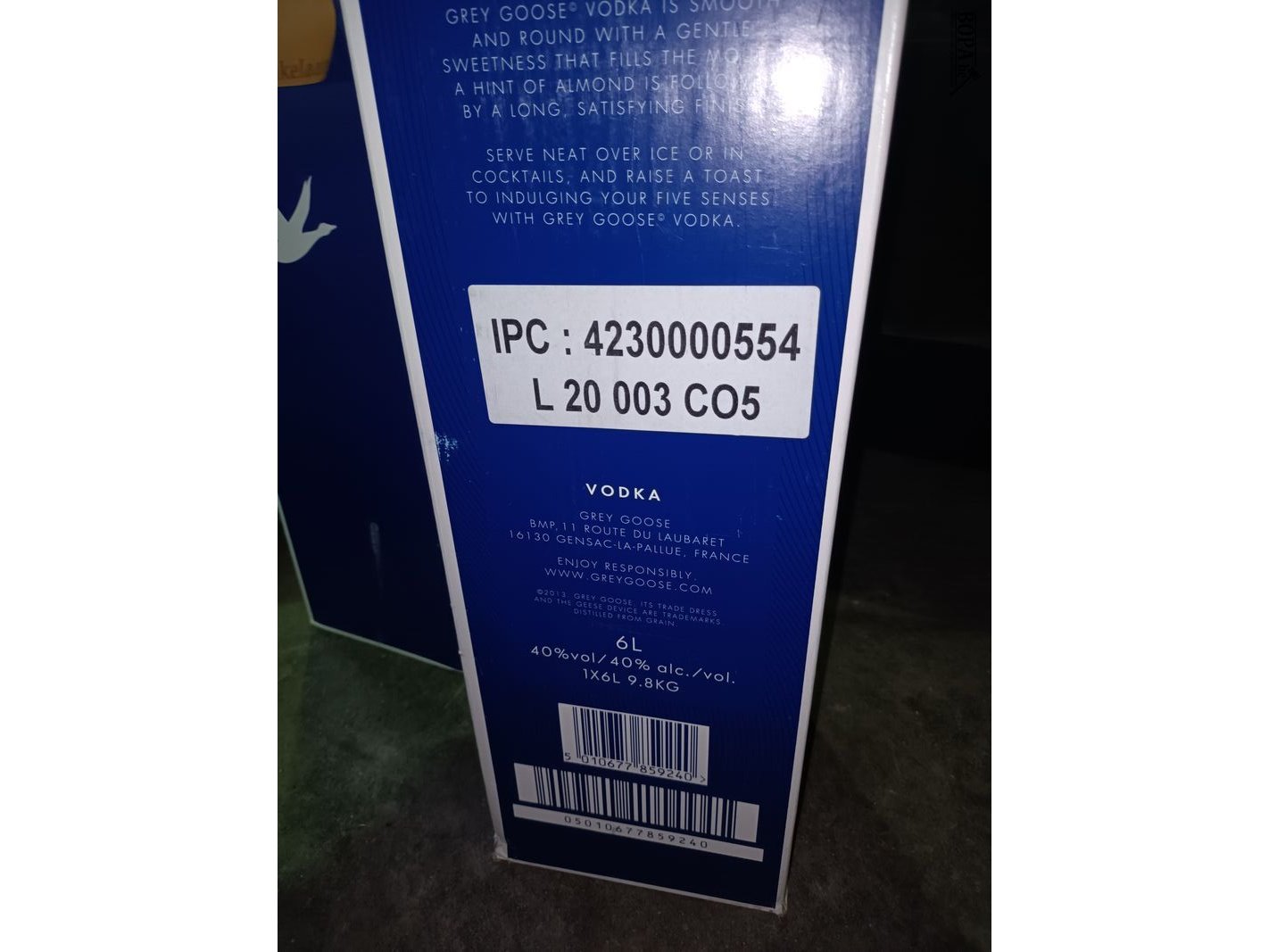 Fles Grey Goose Vodka van 6 liter.