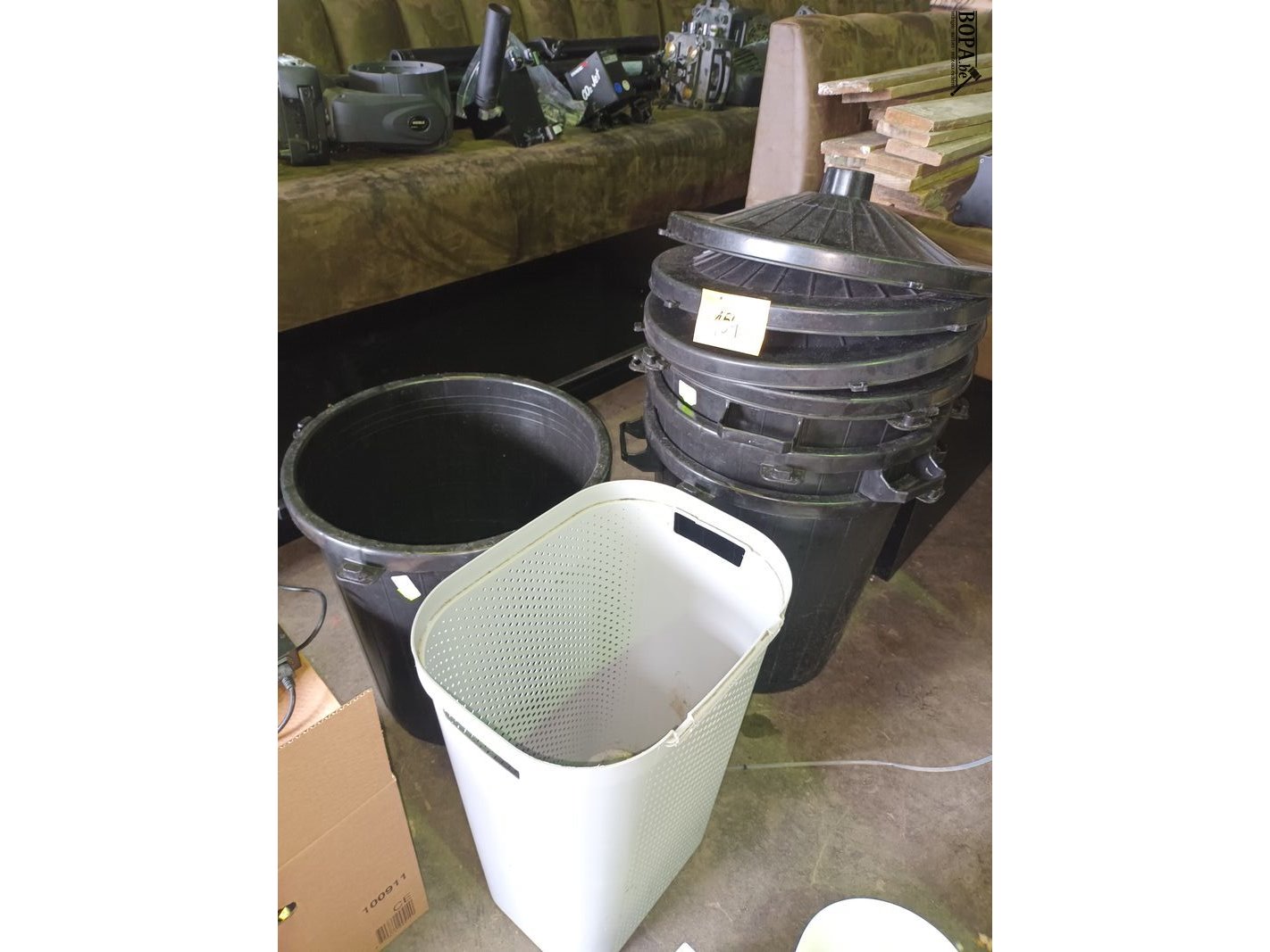 Vuilnisbakken. 5 stuks waarvan 3 met deksel.