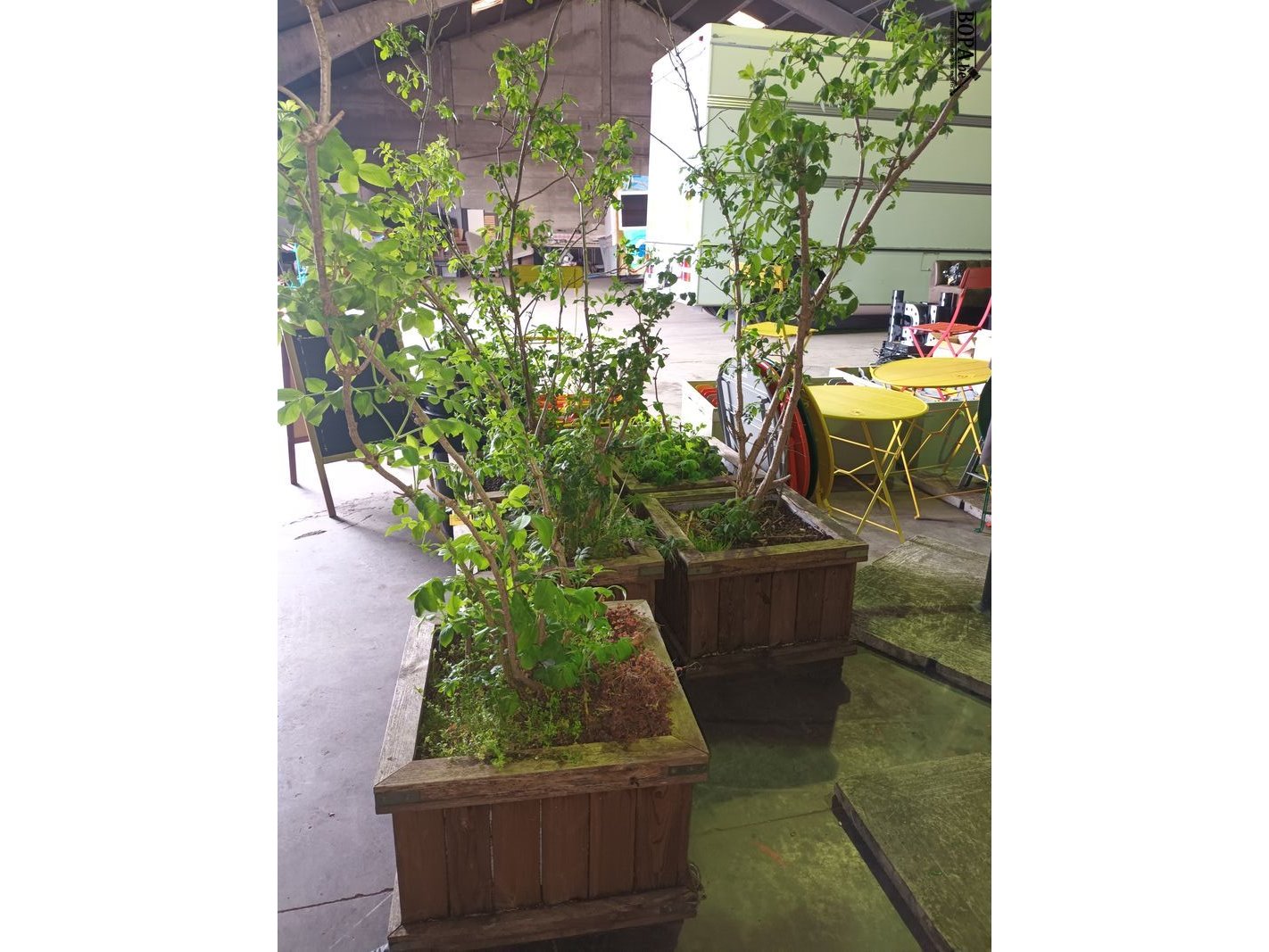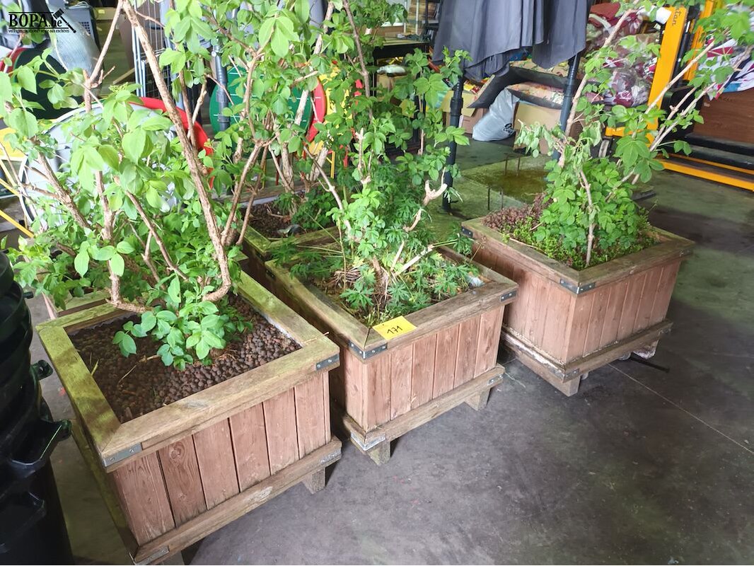 Lot 171 - houten plantenbakken met planten. 5 stuks