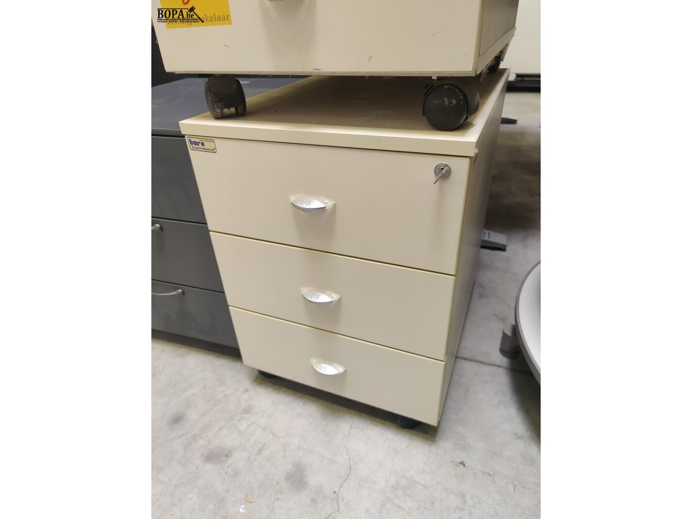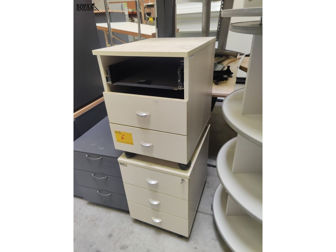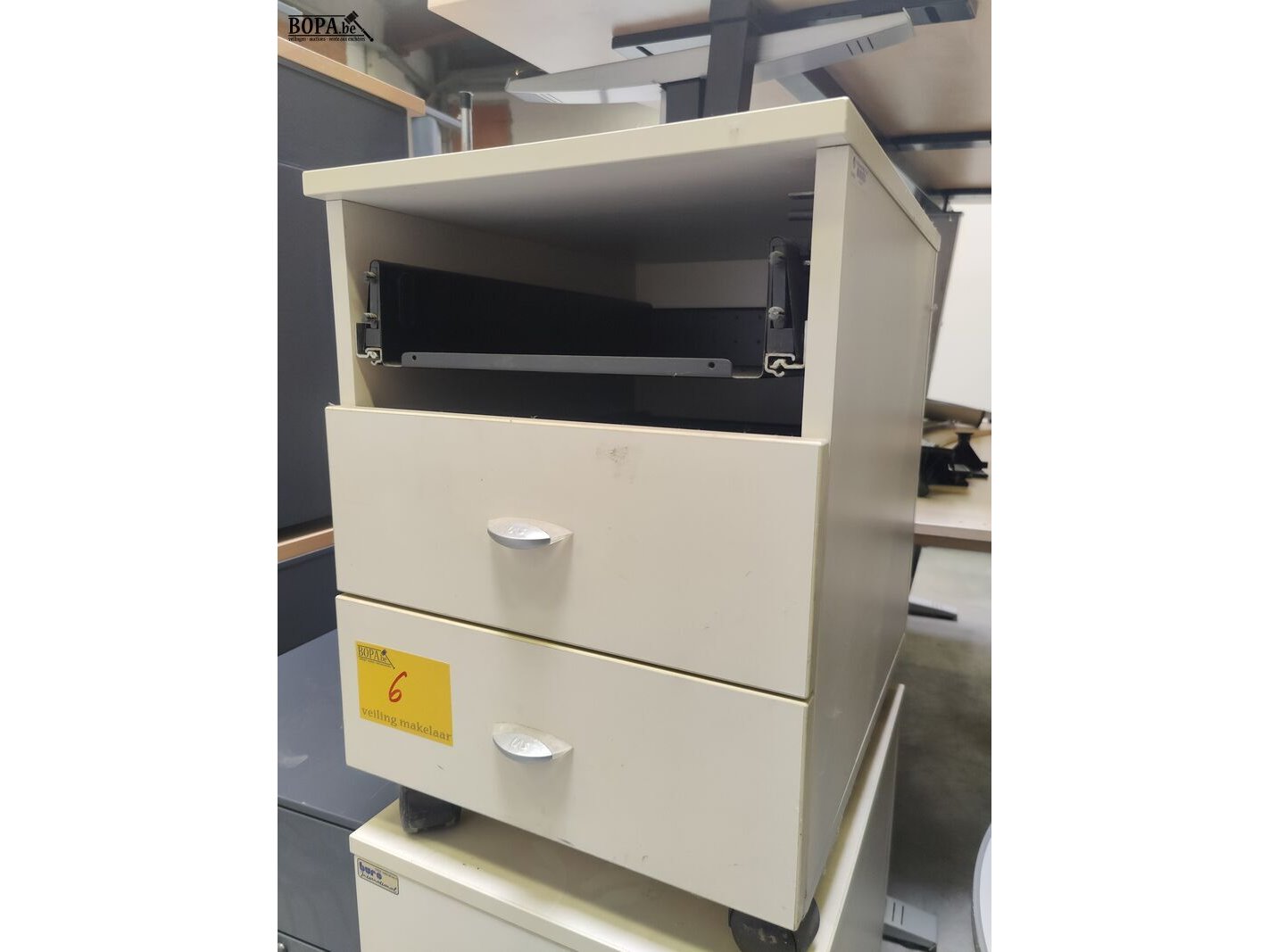 2 Buro ladenblokjes, waarvan van 1 de bovenste lade ontbreekt. 42 x 55 x hoogte 58 cm