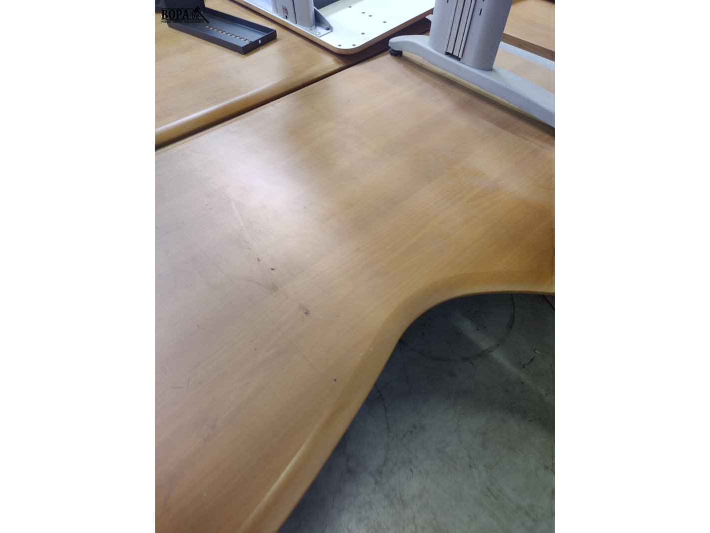 3 gebogen burelen met houtlookbovenblad, merk: LAS, 160 x 120 cm