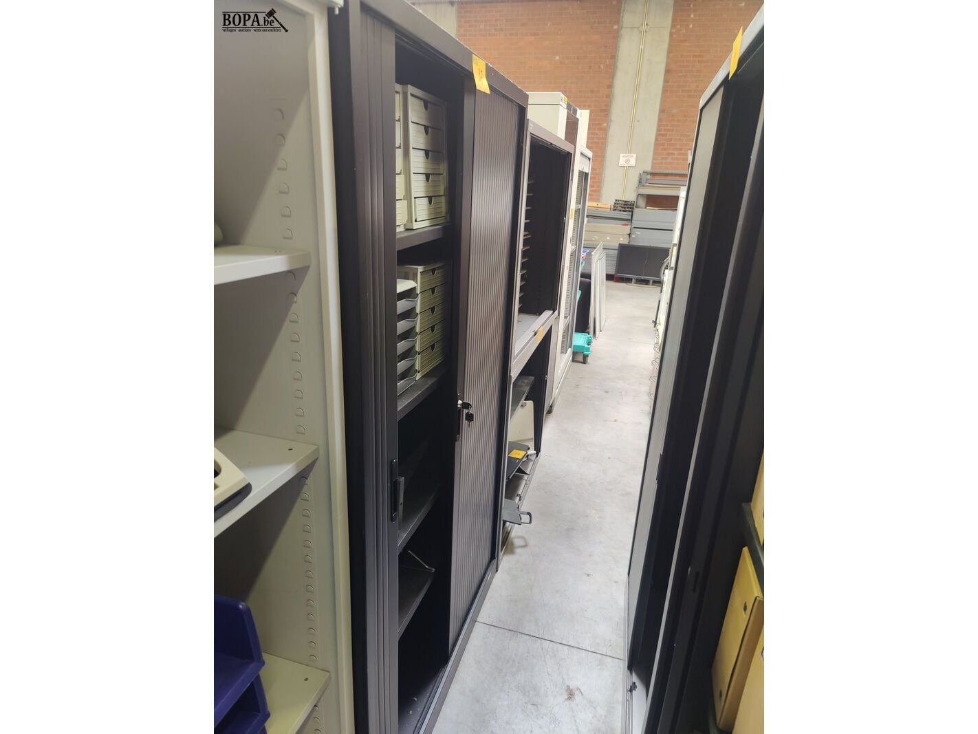 Metalen dossierkast met 4 legbanken, 120 x 45 x hoogte 198 cm, deuren na te zien