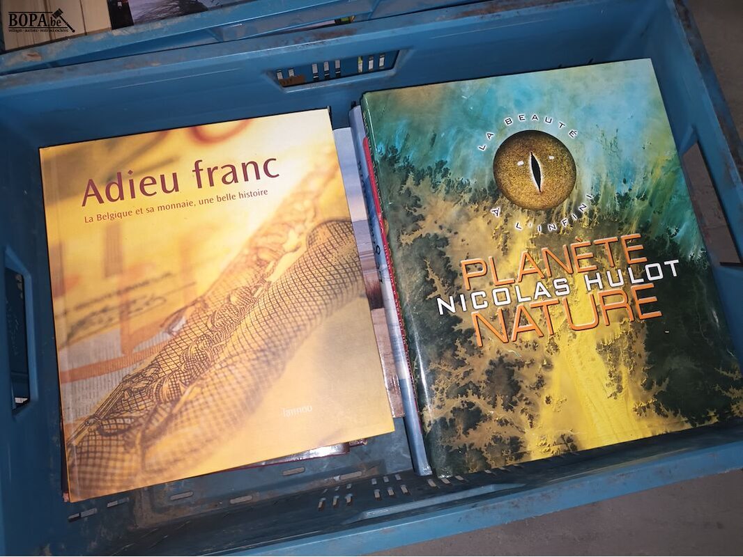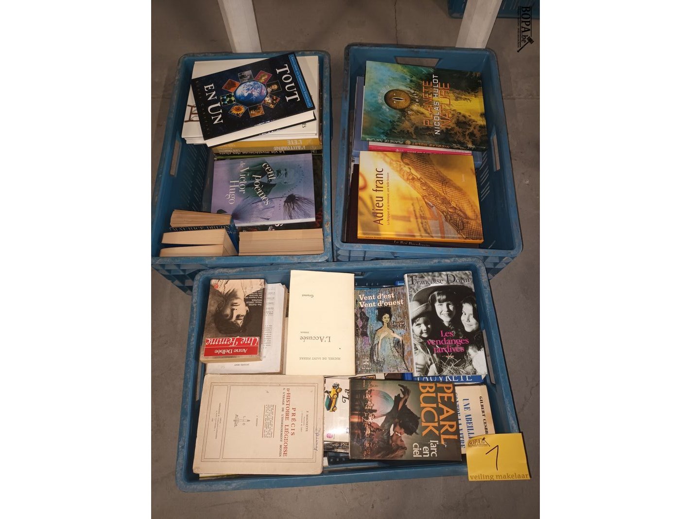 3 bakken met Franstalige boeken. Bakken niet inbegrepen.