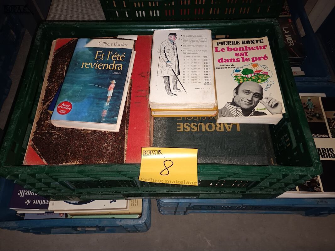 3 bakken met Franstalige boeken. Bakken niet inbegrepen.