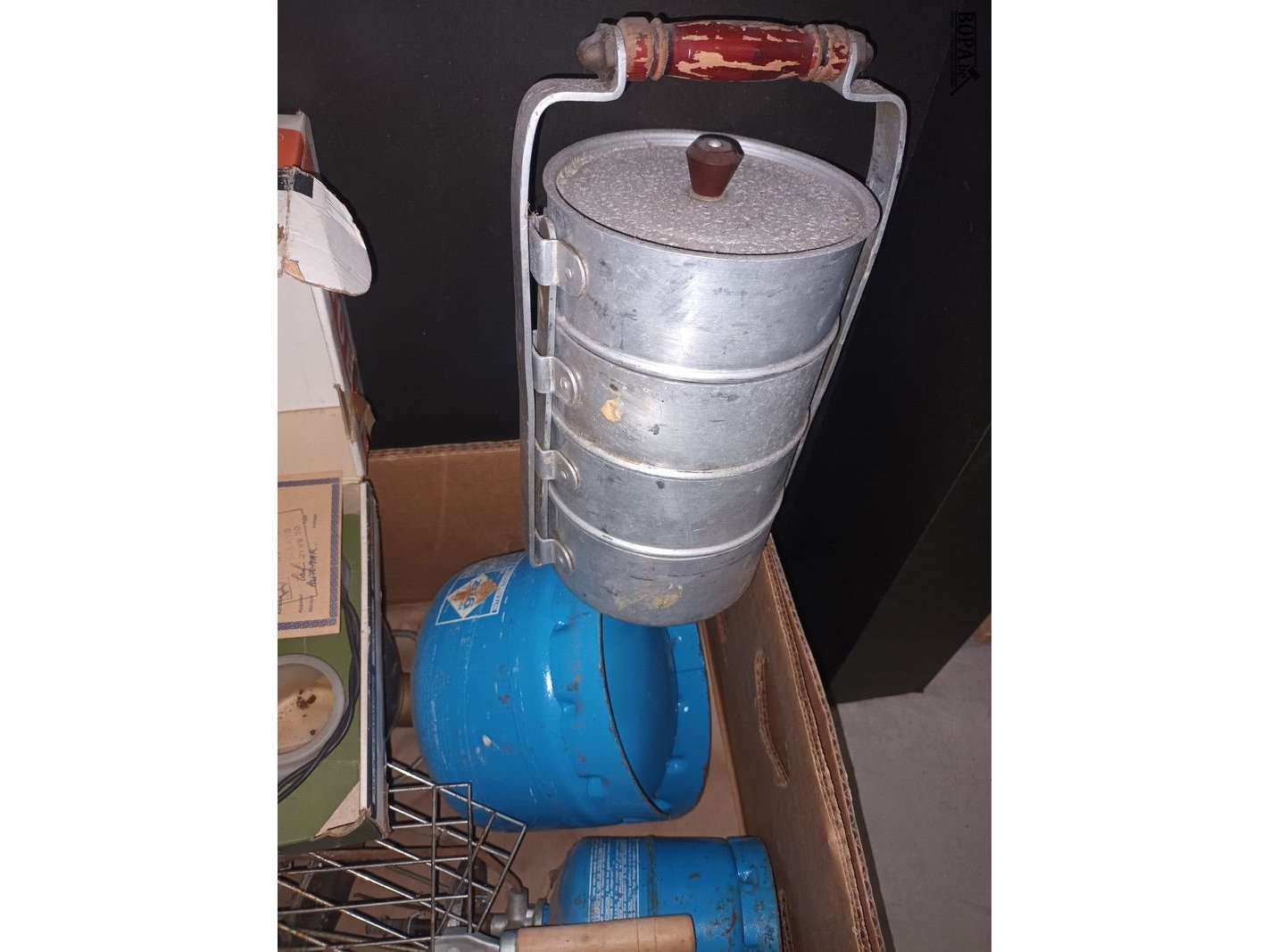 1 doos met kampeermateriaal .