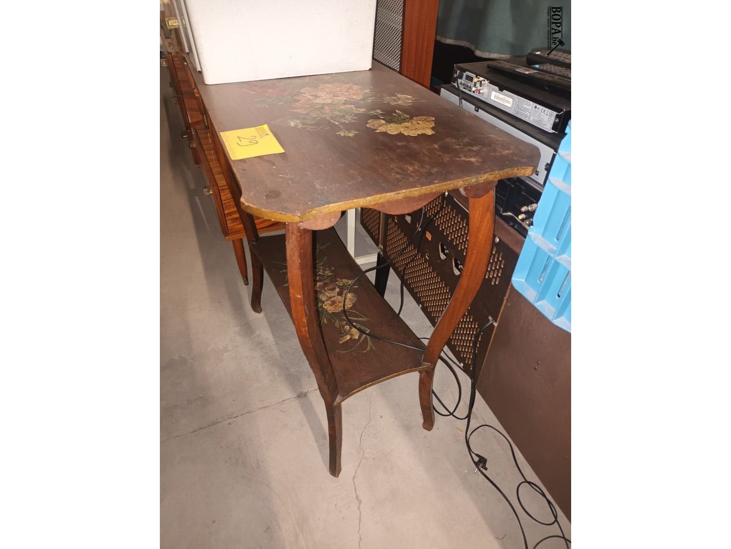 Antiek bijzettafeltje beschilderd met bloemenmotieven. 85 x 45 x 85 cm.