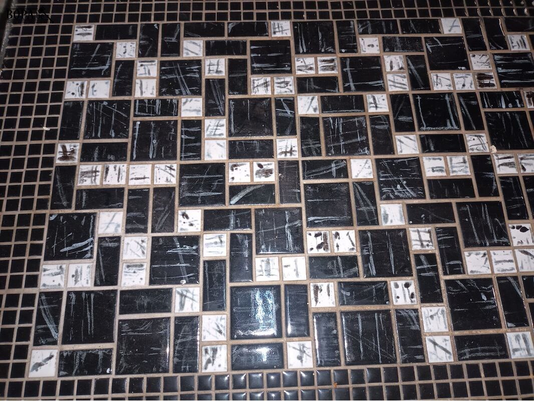 Vintage salontafel met mozaïeken. 112 x 41 x 41 cm.
