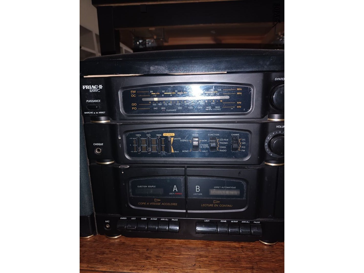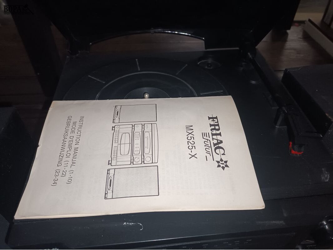 Stereoketen Friac MX525-X met platenspeler, radio en cassettedeck.