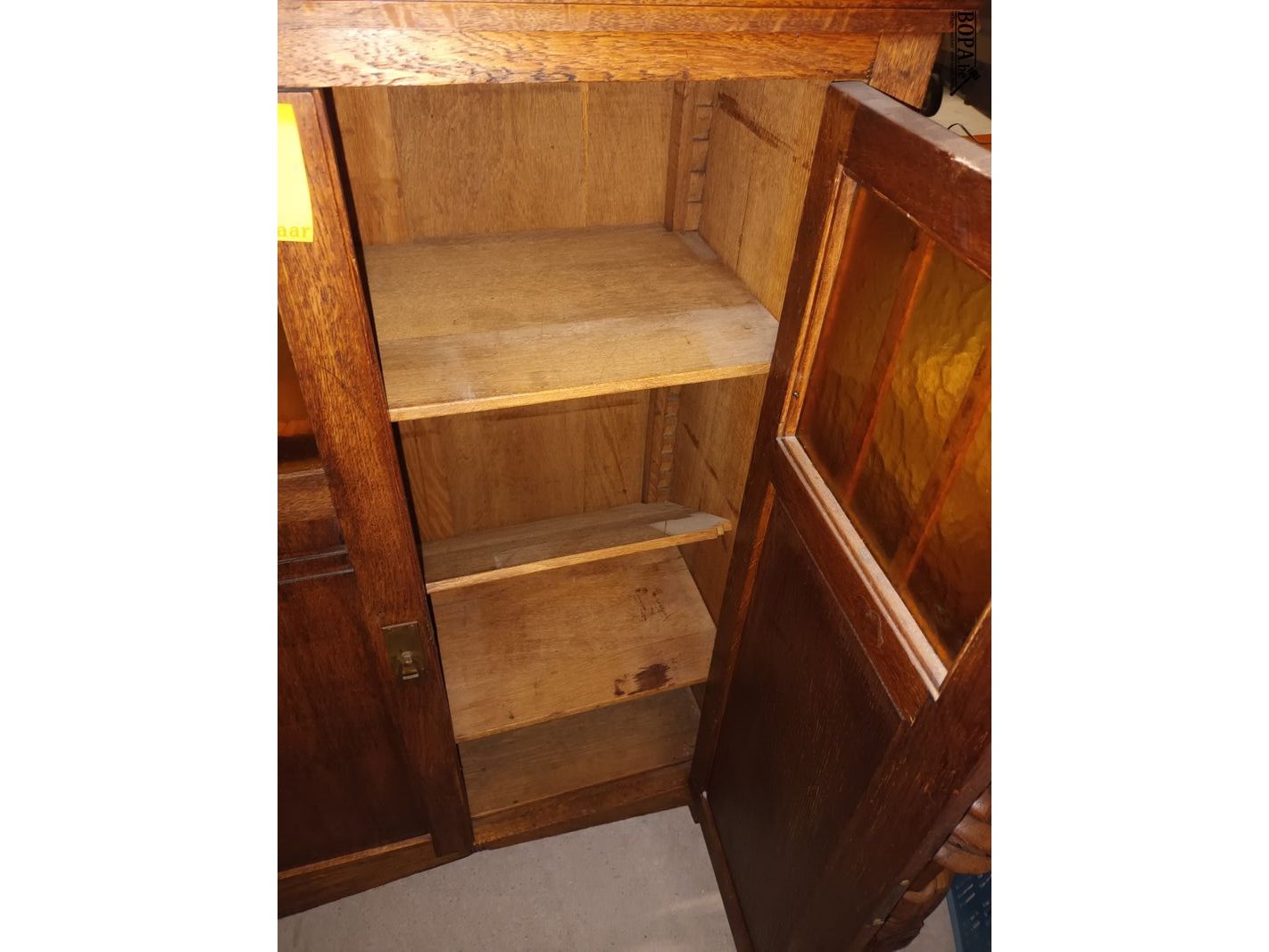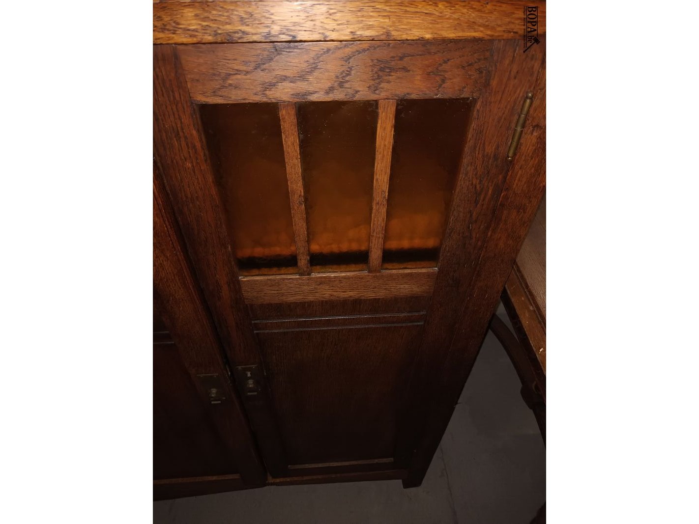 Antieke kast met 2 deuren en gekleurd glas. 80 x 40 x 110 cm.
