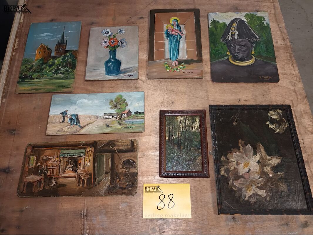 Lot 88 - schilderij op plank. 8 stuks