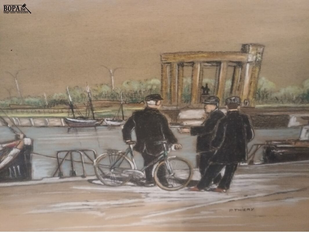 Tekeningen. 2 stuks. Haven en garnaalvissers.