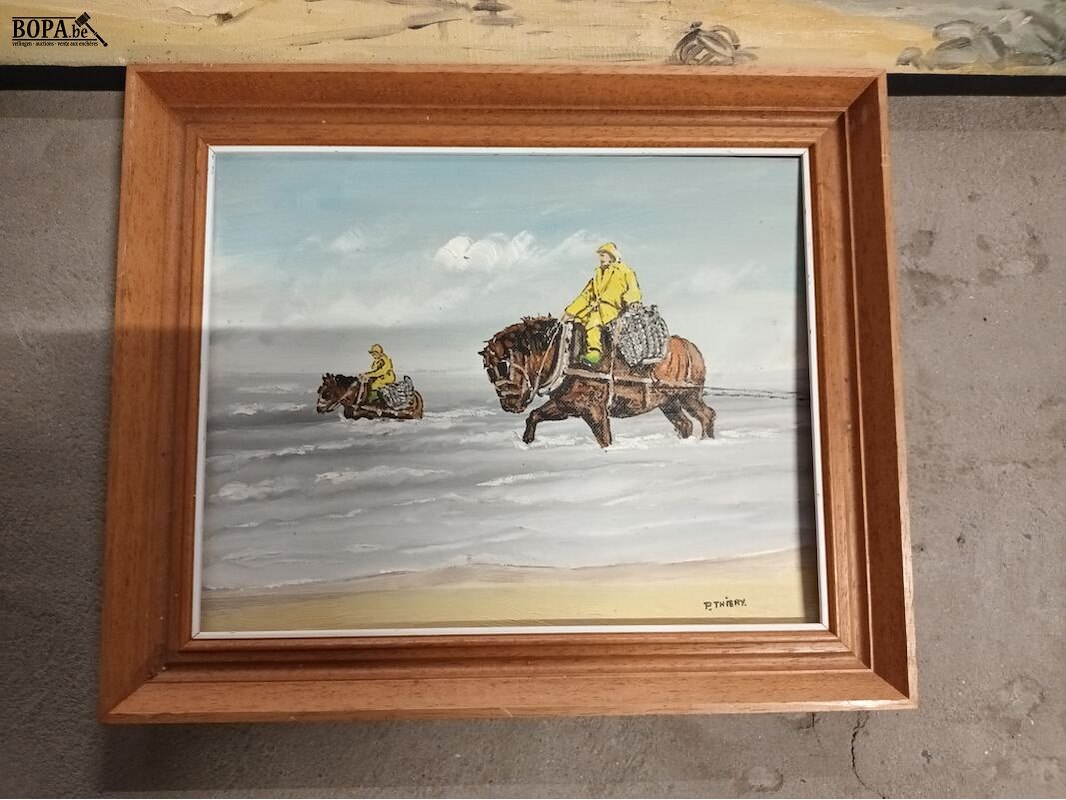Lot 98 - schilderij garnaalvissers en paard. 3 stuks