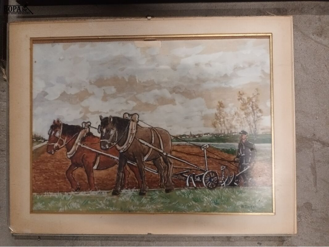 Tekeningen. 3 stuks. Haven, paard en ploeg en garnaalvissers.