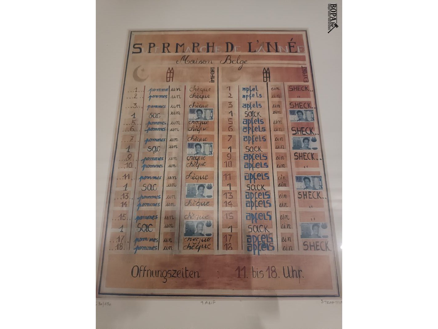Kleurenlithografie Straatman (Angel Vergara) 'Tarif' uit de serie 'Supermarché Belge, supermarché de l'Année' (ingekaderd, gesigneerd) 53x53cm