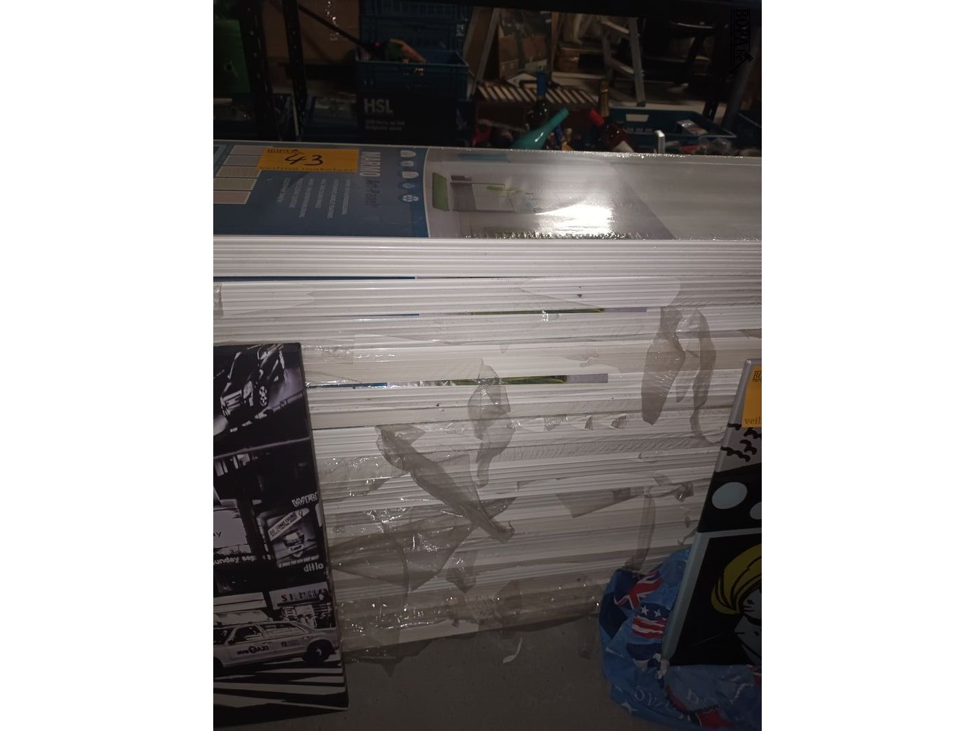 27 pakken met telkens 4 panelen wand- en plafondbekleding.