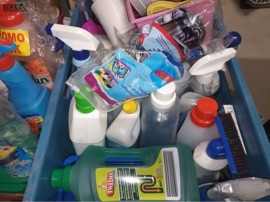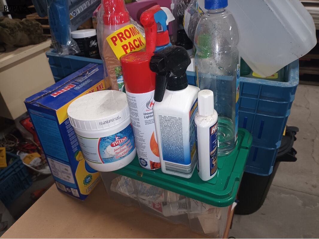 Lot onderhoudsproducten. Bak niet inbegrepen.