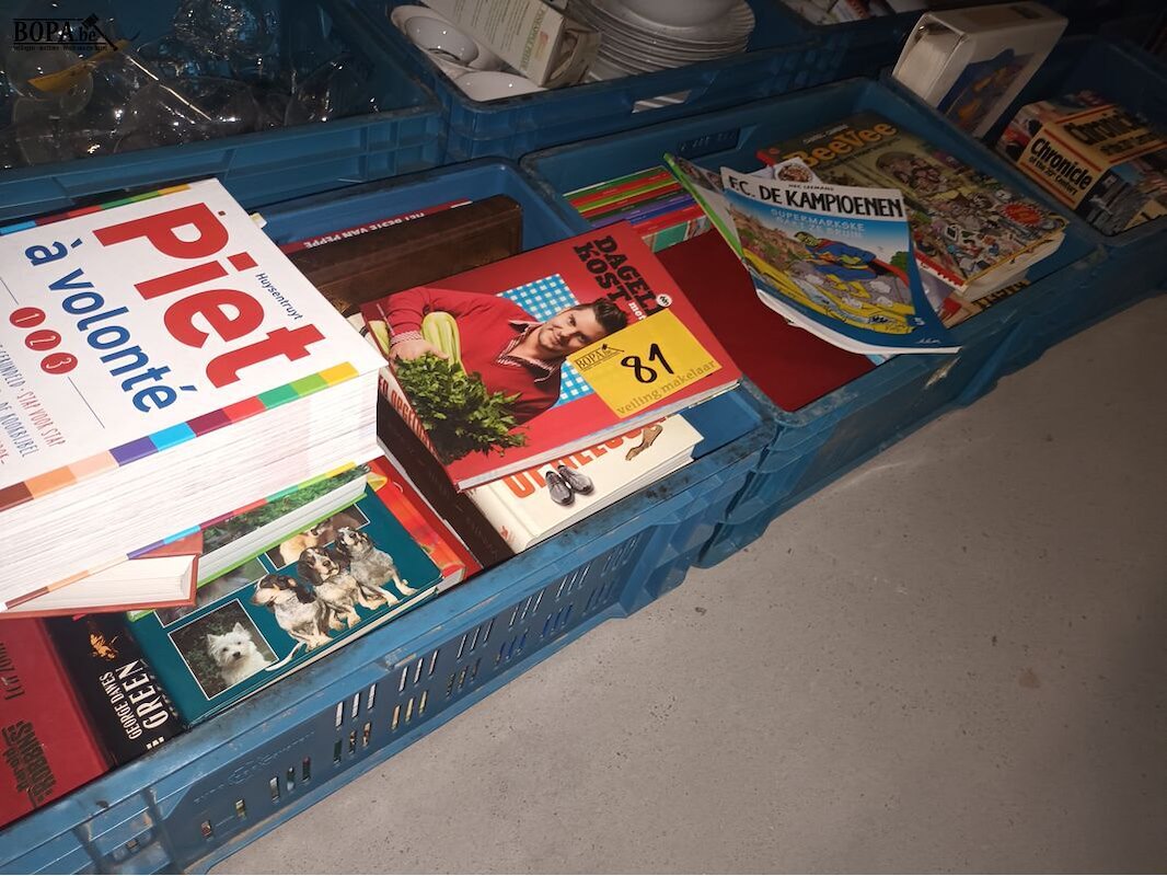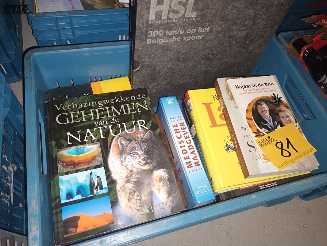 4 bakken met diverse boeken. Bakken niet inbegrepen.