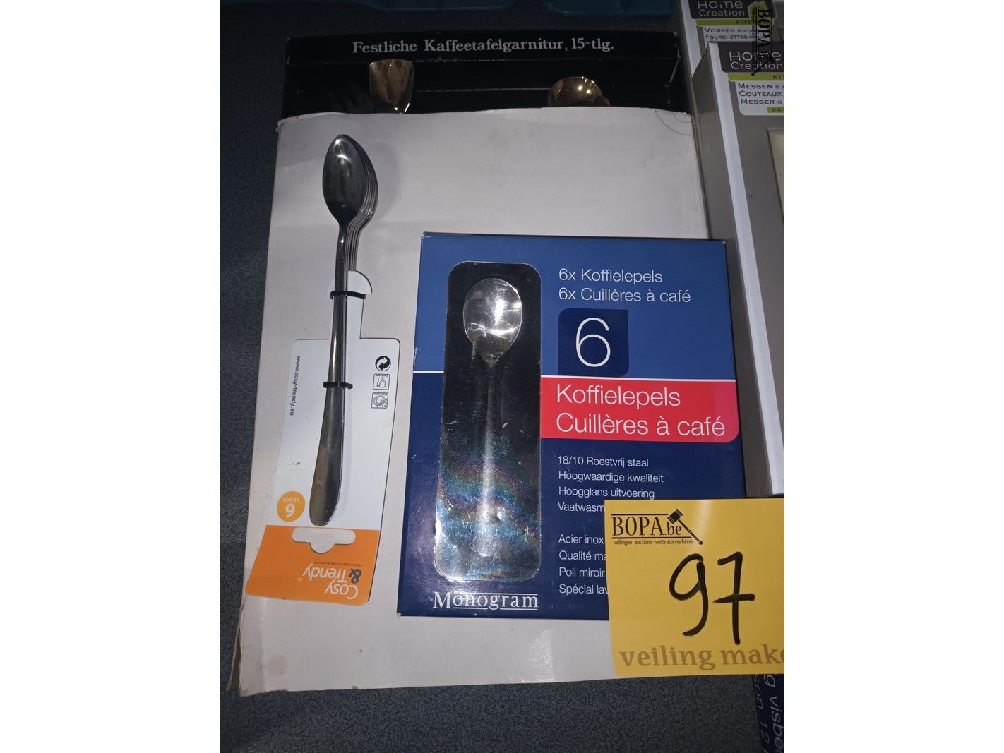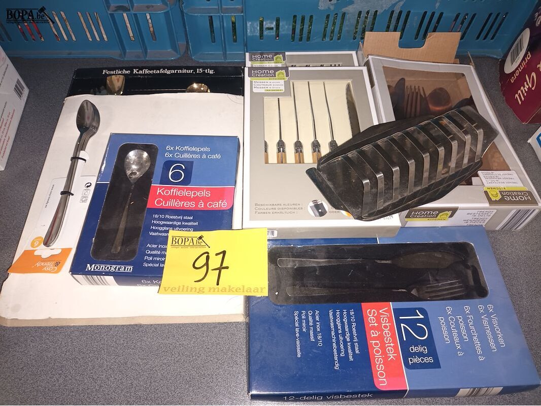 Lot 97 - besteksets en toastrekje. 7 stuks