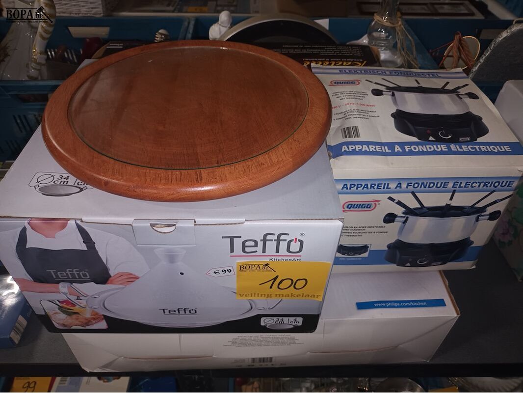 Keukentoestellen. 5 stuks. Fondue, grill, tajine, draaiplateau, raclette.