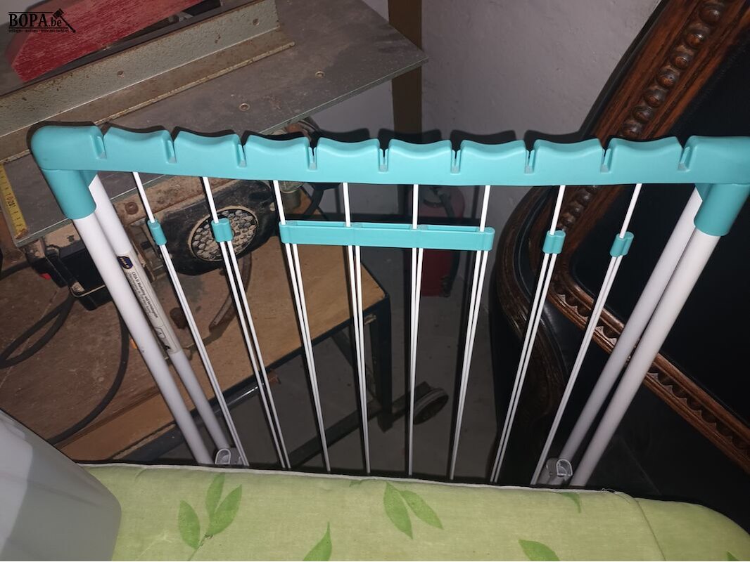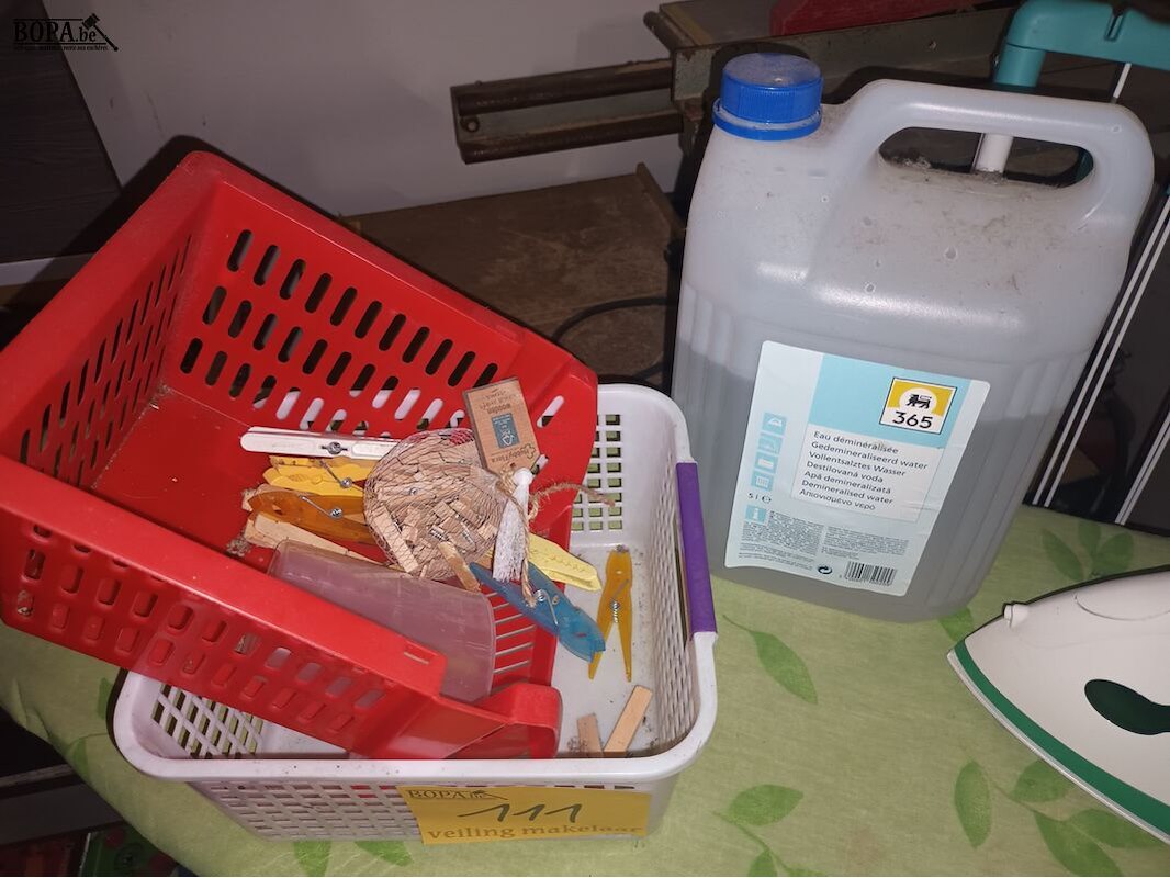 Strijkplank, wasspelden, droogrek, strijkijzer en gedemineraliseerd water.