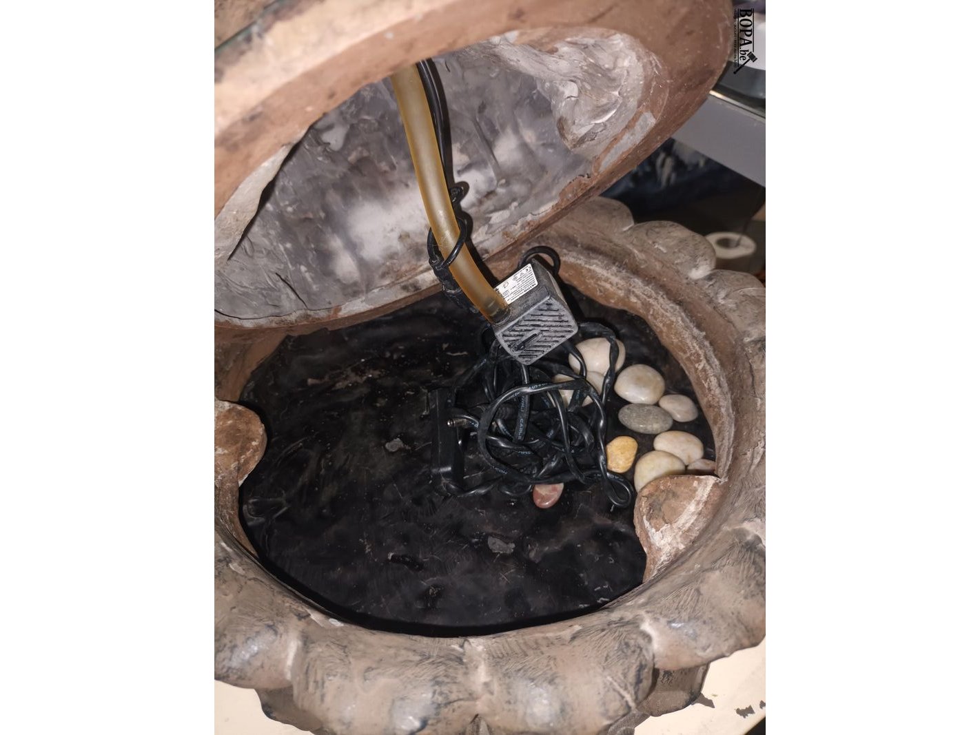 Fonteintje in de vorm van een zittende boeddha. Hoogte 51 cm.