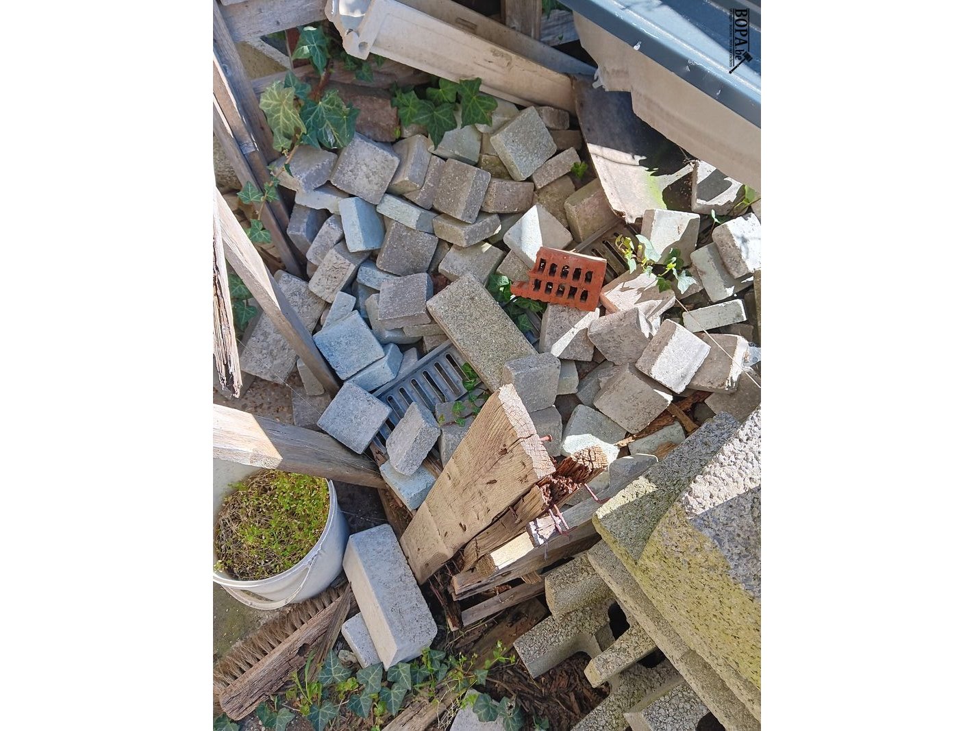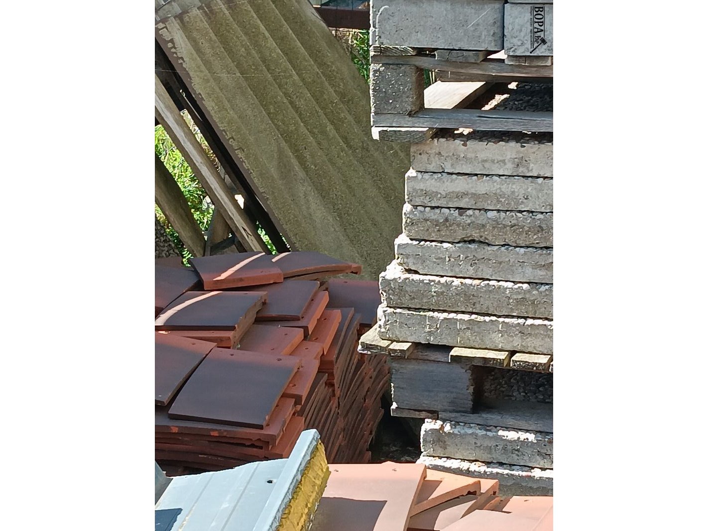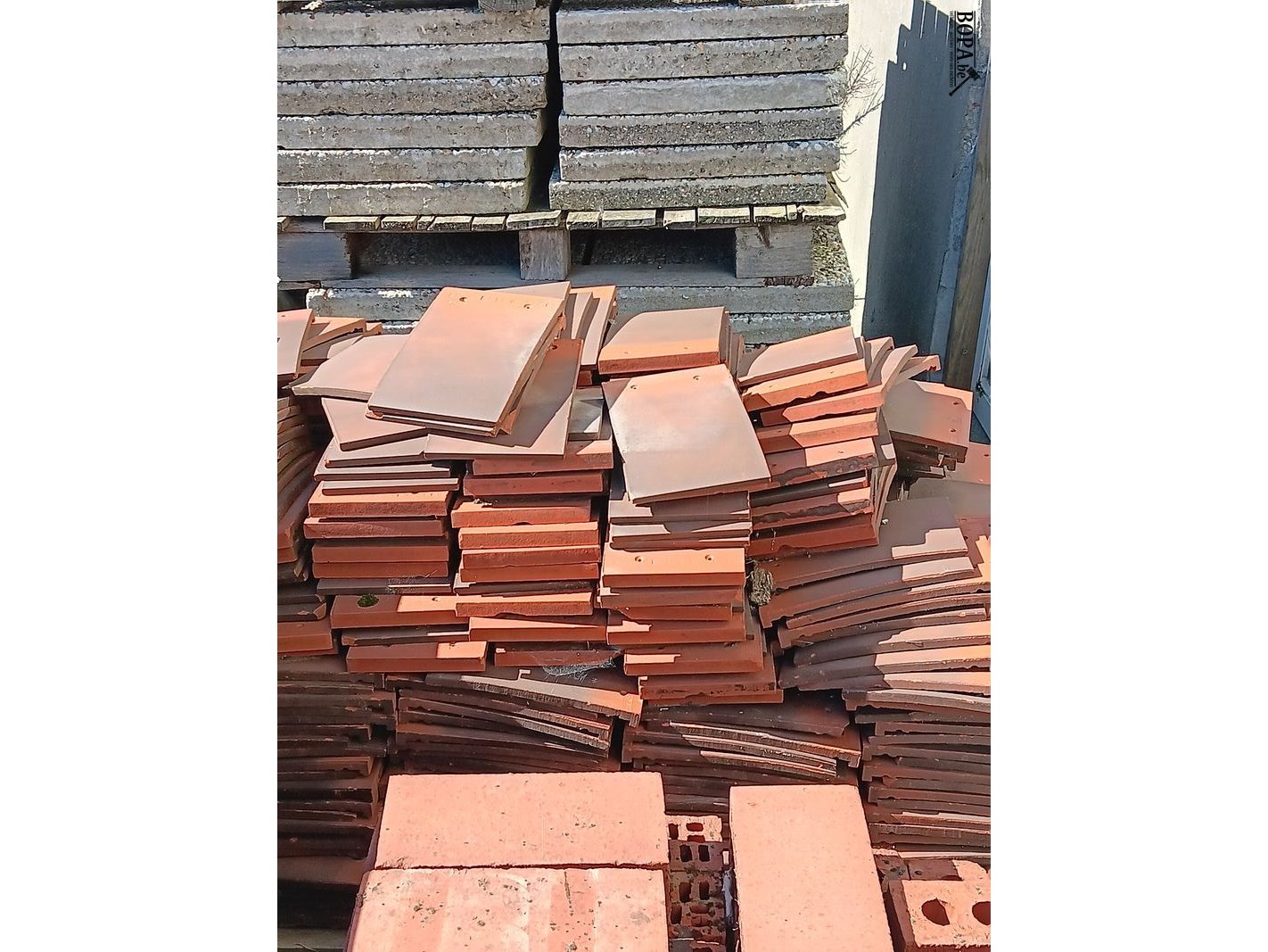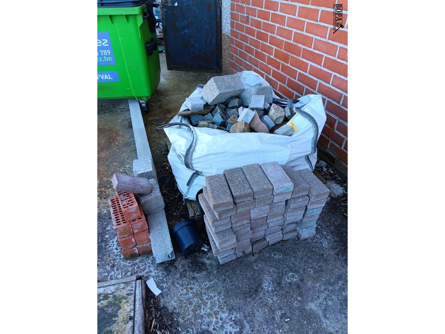 Bouwmaterialen zoals klinkers, kasseien, dakpannen, keidalen, etc.