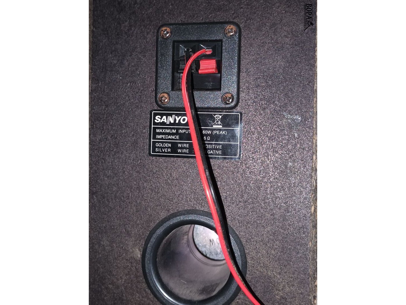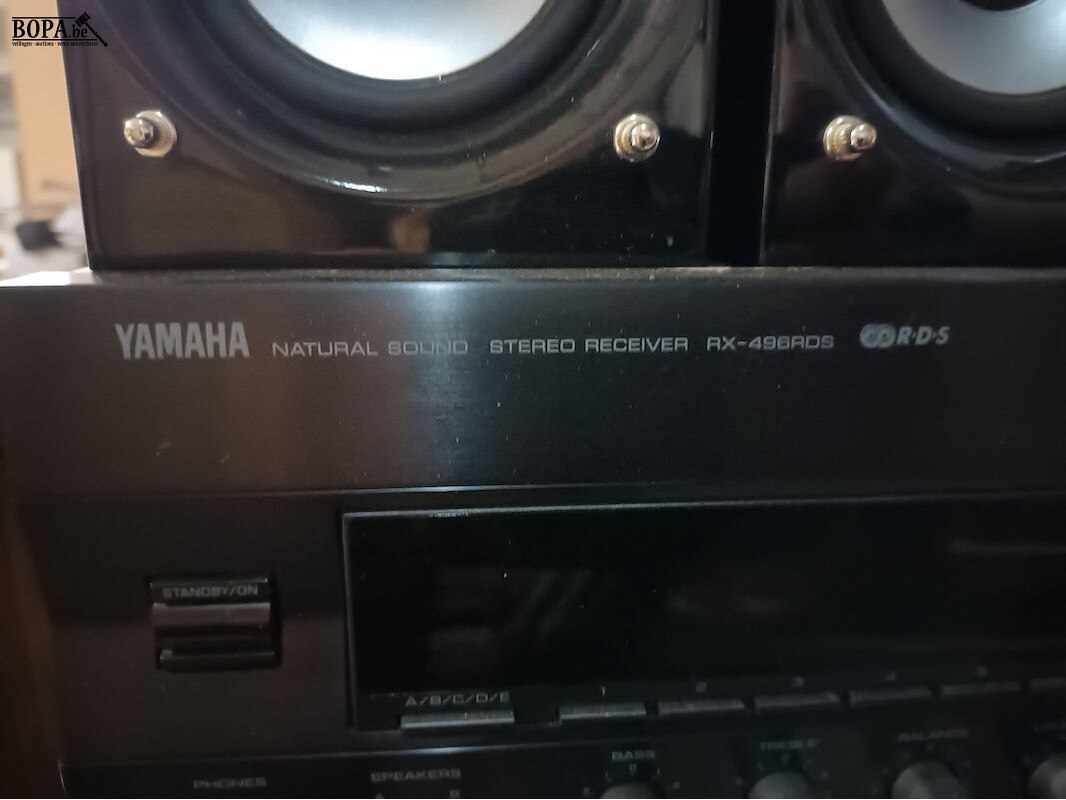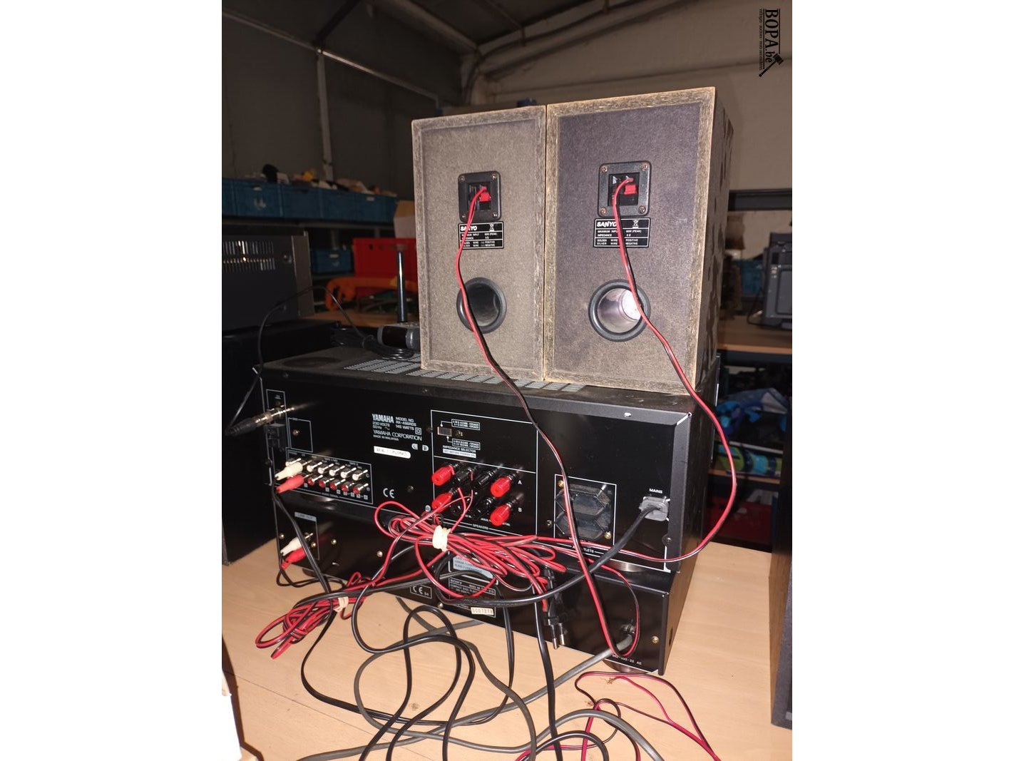Muziekinstallatie bestaande uit een Yamaha natural sound stereo receiver RX-496RDS, een Sony compact disc player CDP-215, afstandsbediening en 2 muziekboxen Sanyo.