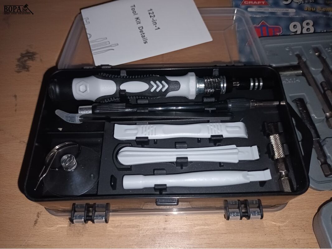 Gereedschap. 1 toolkit 122-in-1 en 1 kistje met bits.