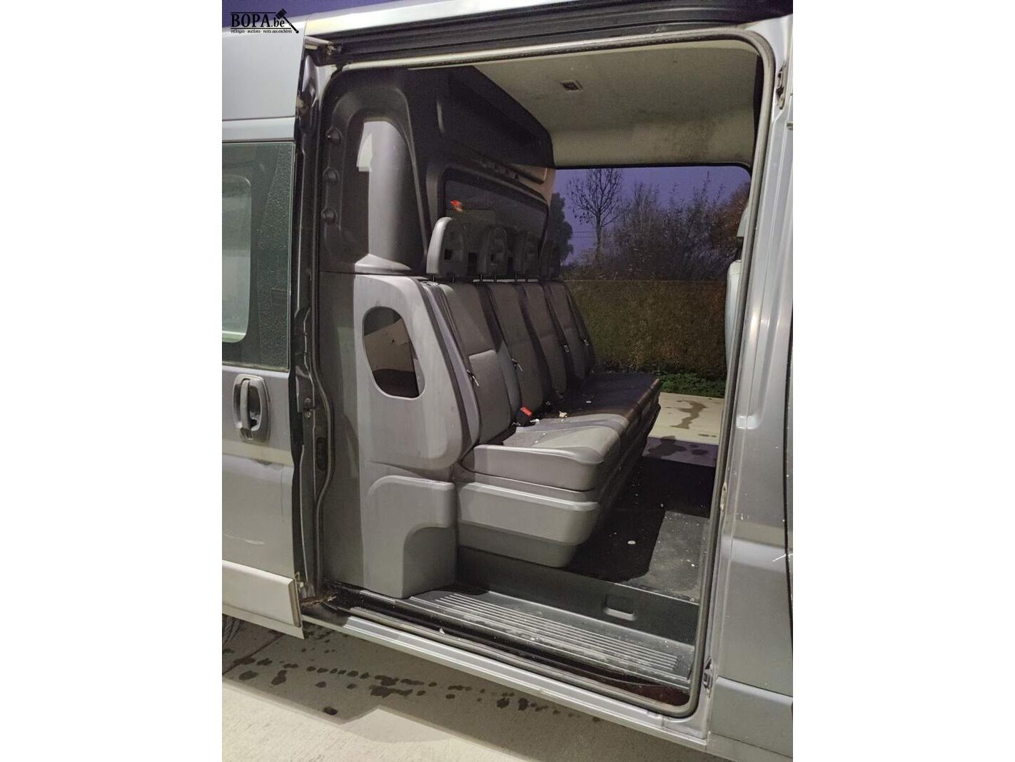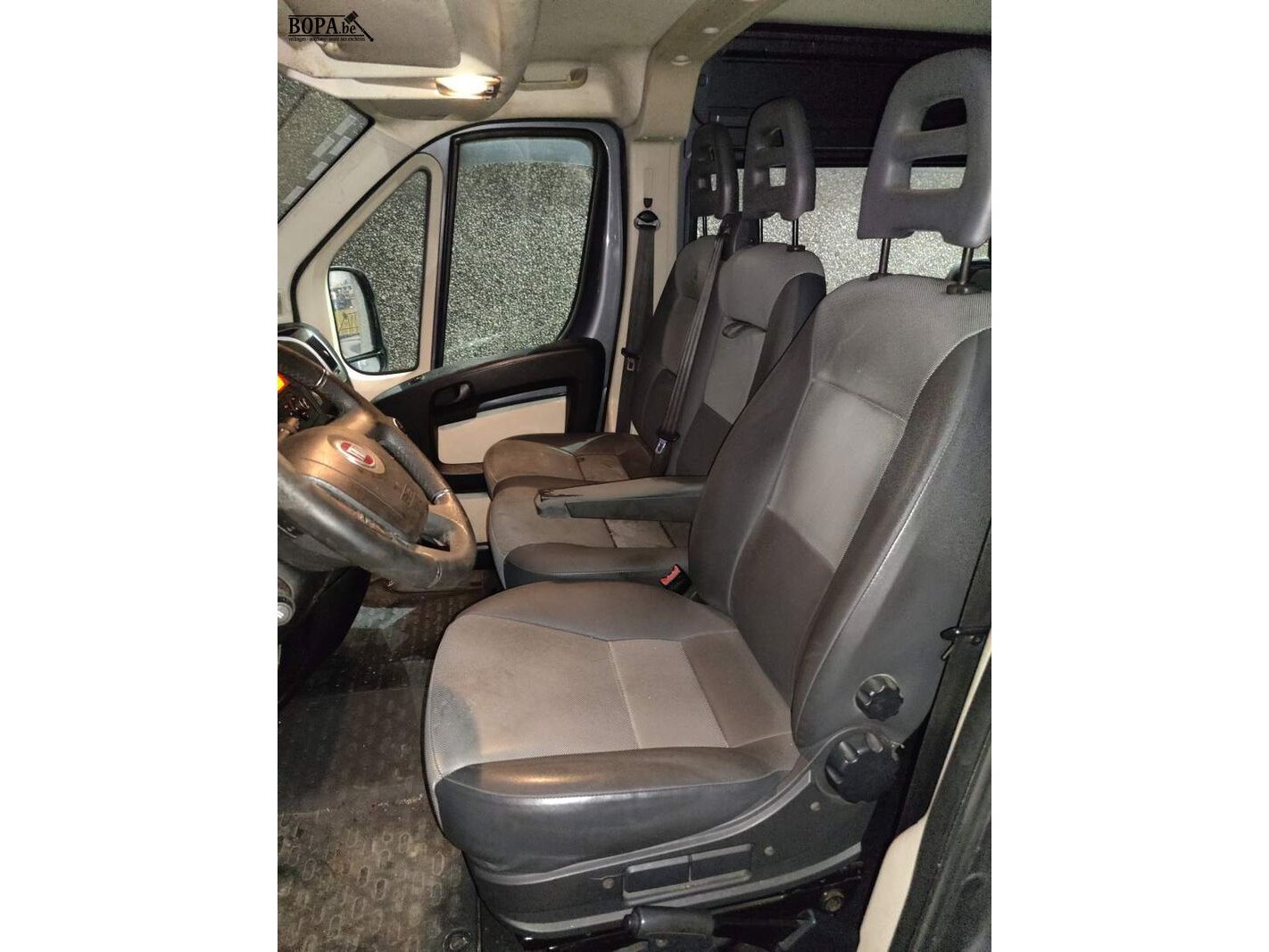 Merk FIAT Model Ducato Multicab Datum eerste inschrijving 9/04/2013 KM stand 377786 KM Chassisnummer ZFA25000002385408 Brandstof Diesel Kleur Grijs Motorinhoud 2999 cm³ Motorvermogen 130 KW Milieuklasse 5 Euro Schakeling Manueel - 6 versnellingen Aantal sleutels 1 Gelijkvormigheidsattest Aanwezig Inschrijvingsbewijs Aanwezig Keuringsbewijs Aanwezig Opmerkingen Geen Bijzonderheden / schade / opties Rijdende staat mits nieuwe batterij Batterij te vervangen Barst in voorruit Krassen in achterbumper Armsteun bestuurder beschadigd Linker schuifdeur beschadigd (zie foto's) Sleutel beschadigd maar werkende Deuk in voorbumper Schade aan afwerkingspanelen achterdeuren Centrale vergrendeling Links en recht voorzien van schuifdeur 6 + 1 zitplaatsen Achterruitrijcamera Parkeersensoren achteraan Airco Ingebouwde originele radio Telefoon/navi houder op dashboard Elektrische ramen en buitenspiegels