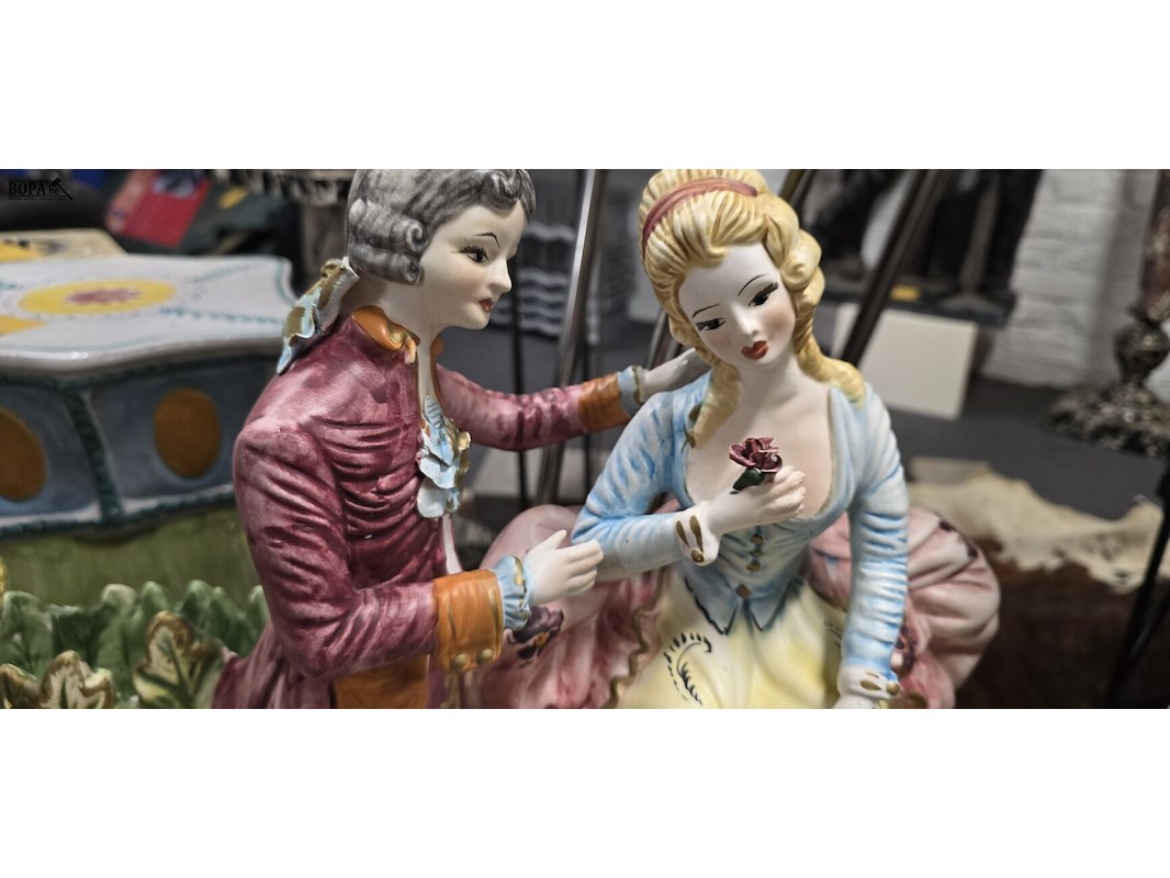 Porseleinen Capodemonte Italiaanse romantisch koppel H 35 cm, B 50 cm