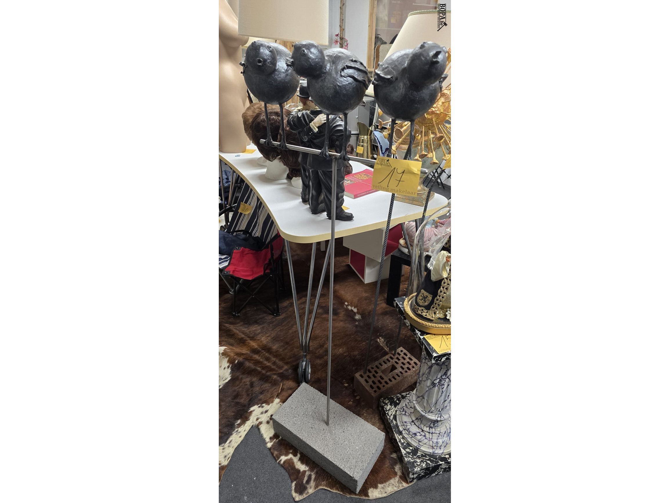 Lot 17 - kunstwerk 3 vogels op stok