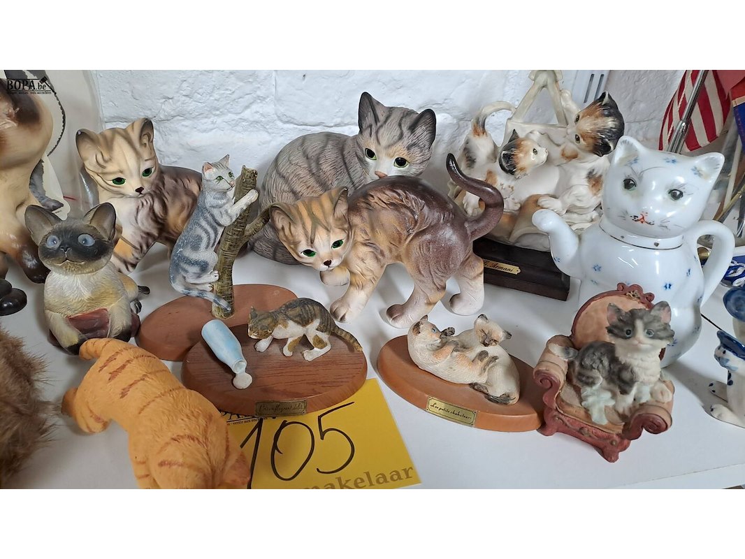 Lot 105 - beeldjes poezen ong 18 stuks + stickers