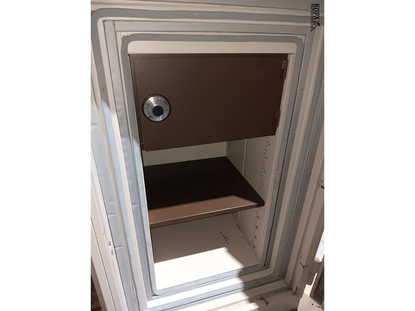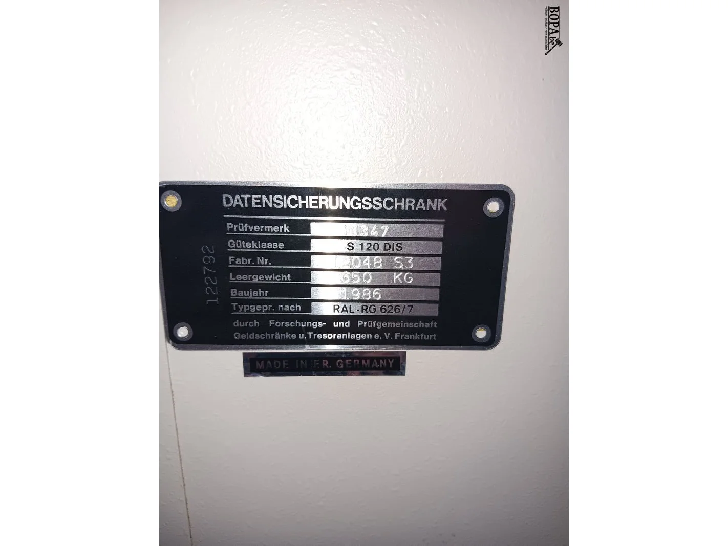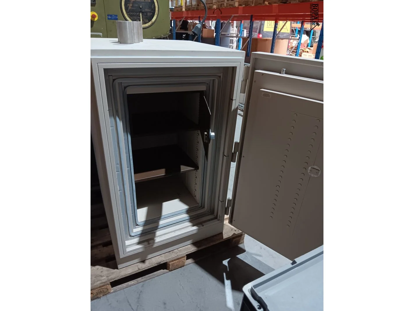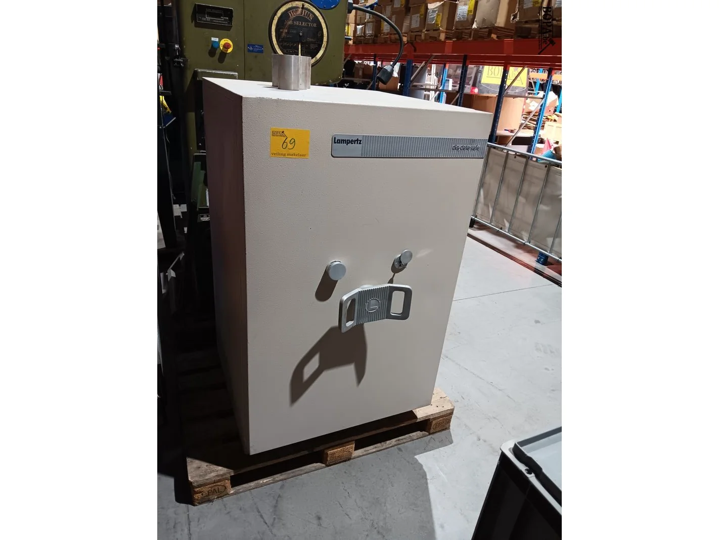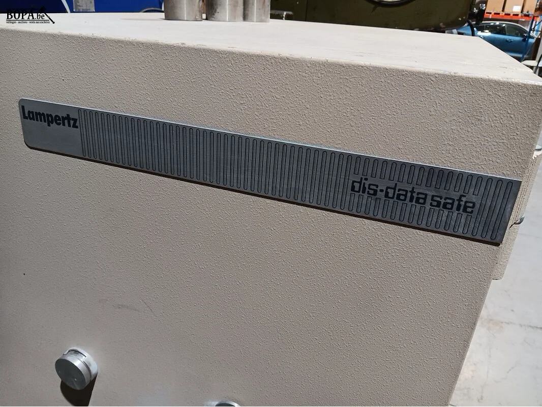 Lamperts datasafe (kluis), bouwjaar 1986, 650 kg, met sleutel en cijfercode, 80 x 83 x hoogte 33 cm, binnendeurtje in de kluis is geopend, hiervan is de code niet gekend.