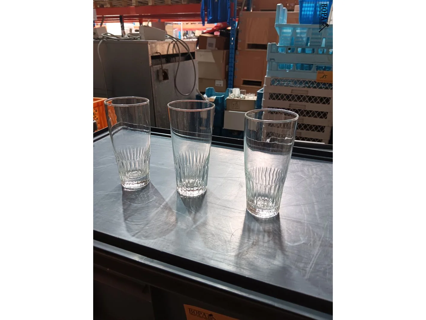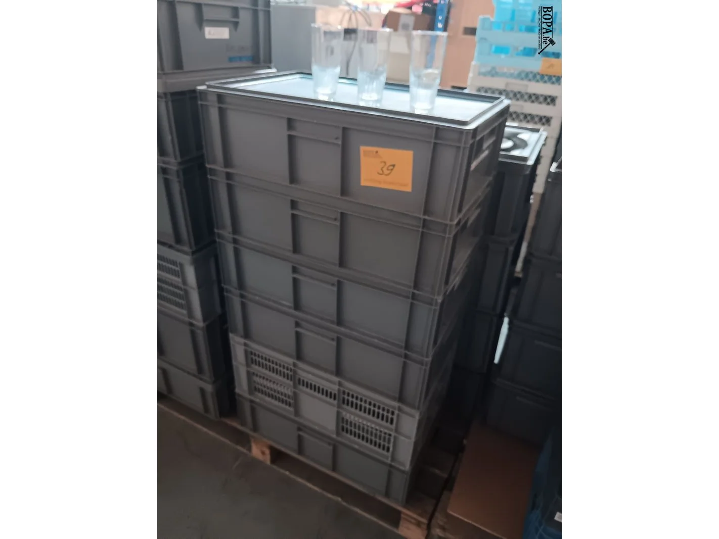 Ong. 220 bierglazen in curvers