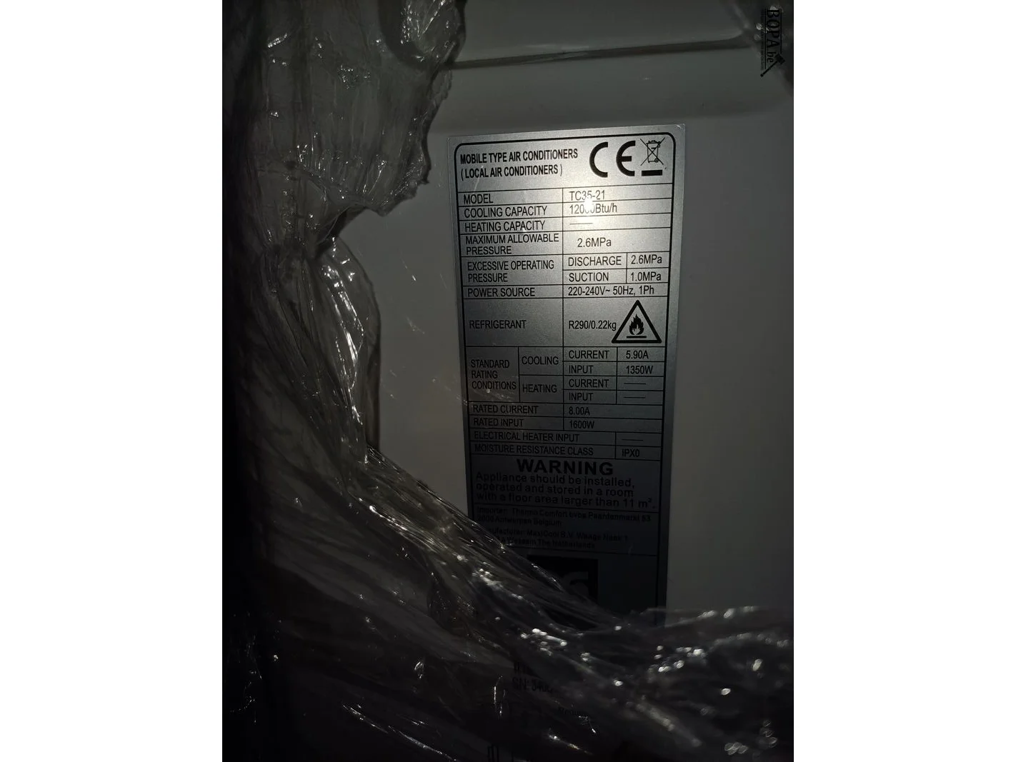 Mobiele thermocomfort airco, model TC35-21, na te zien