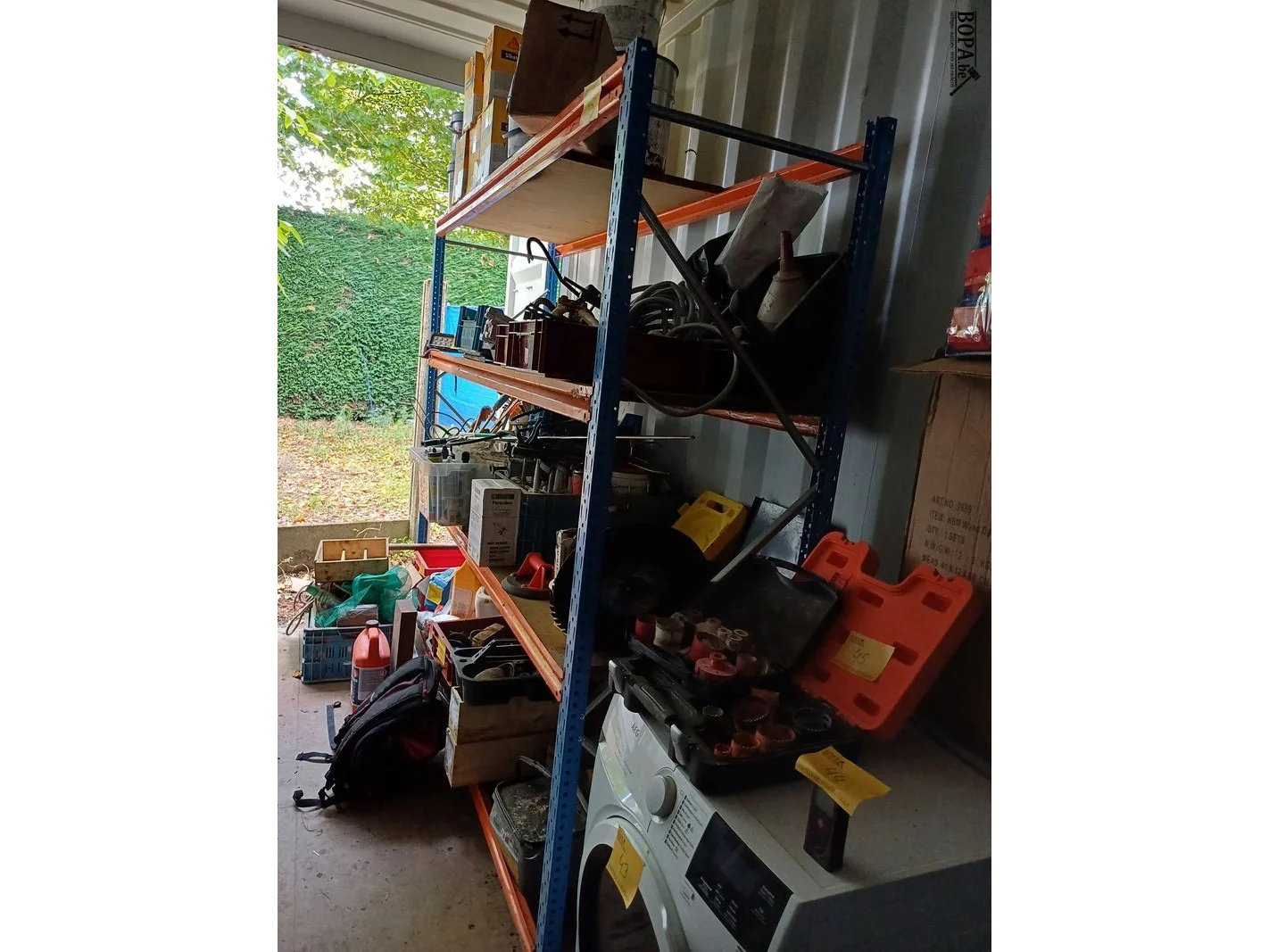 Magazijnrek, bestaande uit 2 staanders, hoogte 200 cm en 8 liggers, lengte 230 cm